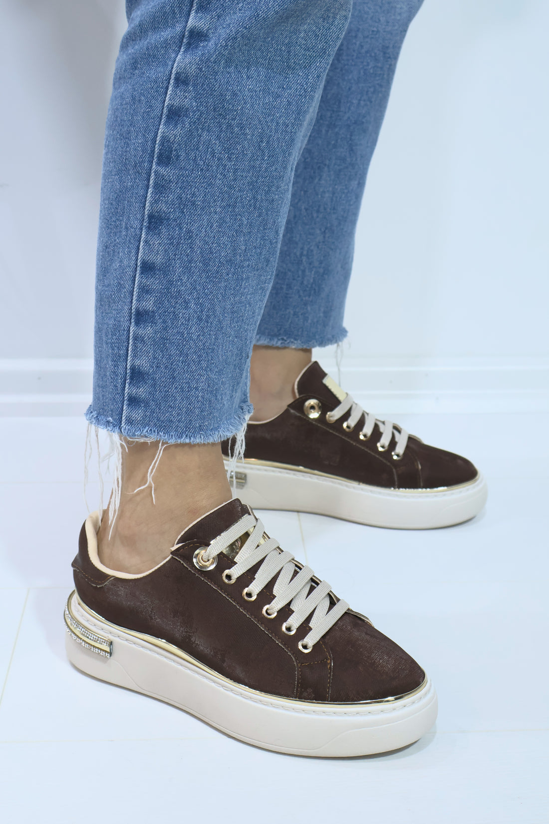Kadın Süvet İnce Şerit Detaylı Spor Ayakkabı
