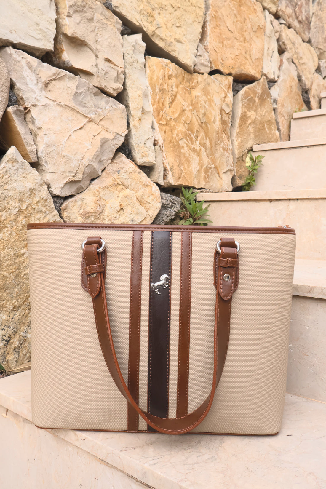 Kadın Beyaz Kahve Desenli Çanta