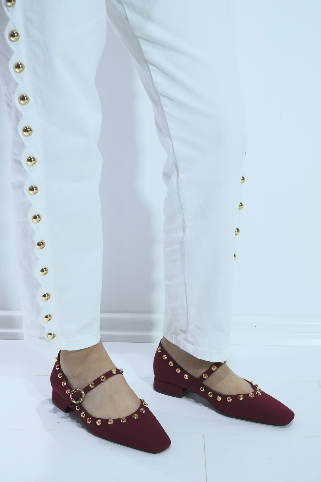 Aura Bordo Zımba Detay Süet Topuklu Babet