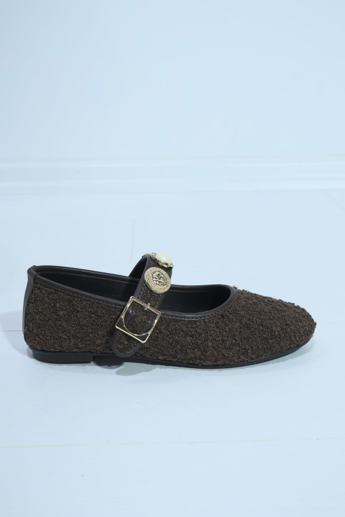 Neza Kahverengi Aksesuar Detay Kemerli Kadın Babet Ayakkabı