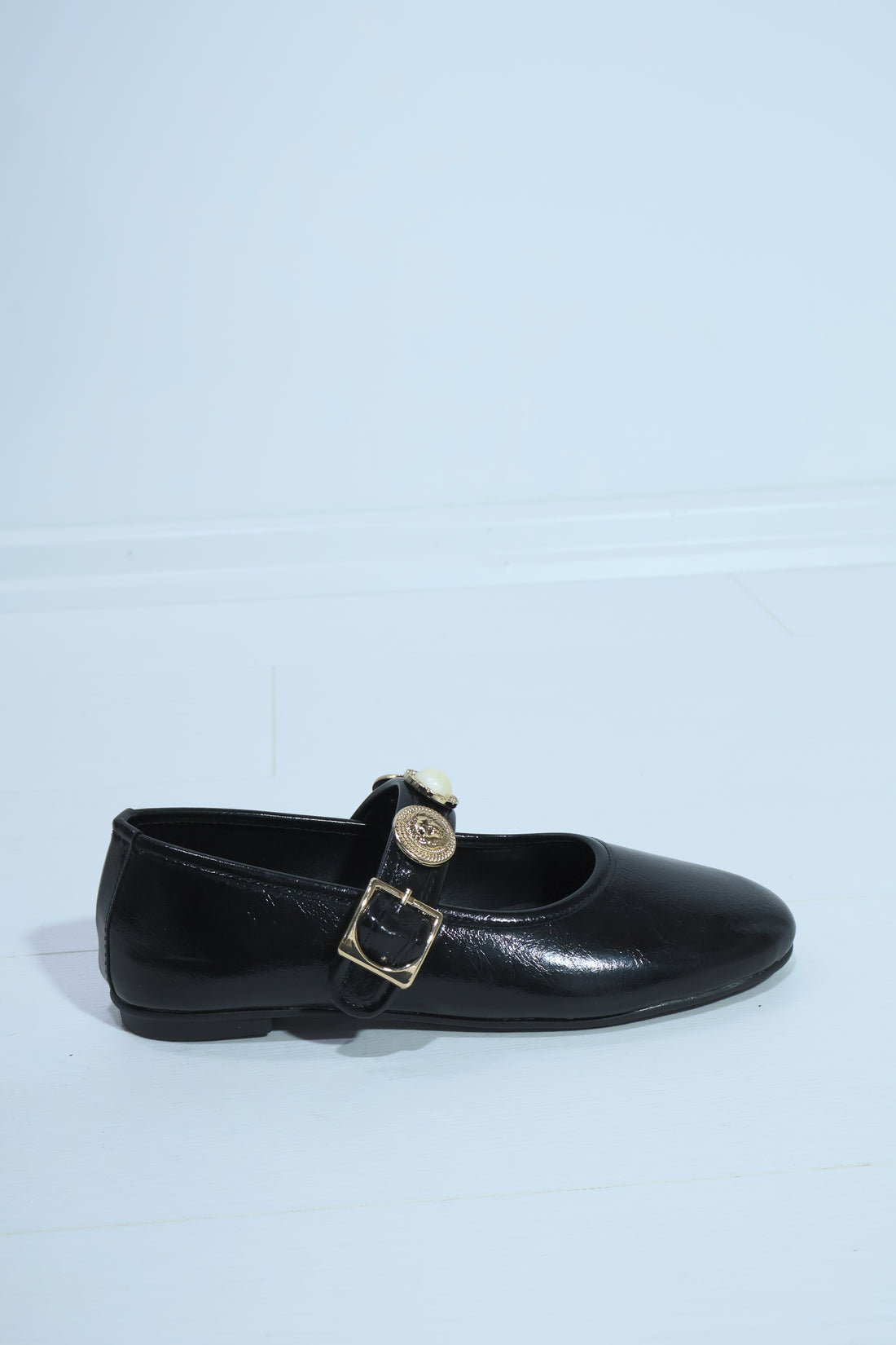 Neza Siyah Rugan Aksesuar Detay Kemerli Kadın Babet Ayakkabı