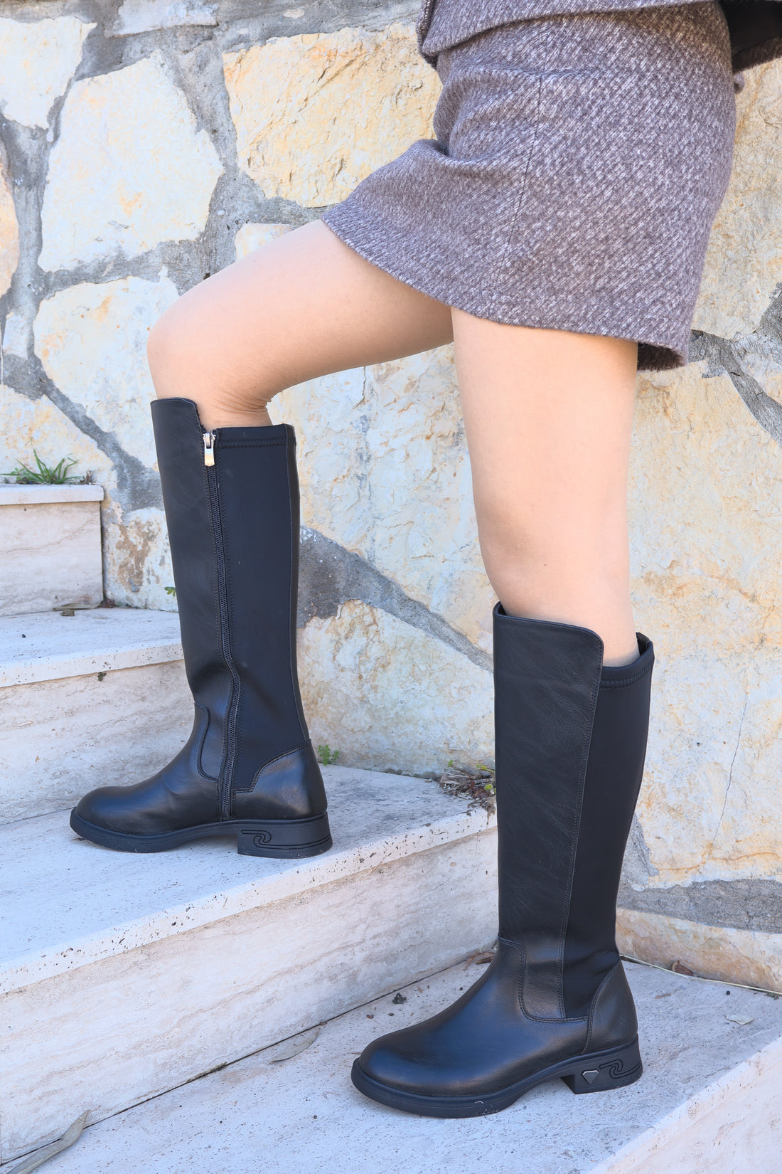 Rachel Kadın Çizme Düz Taban Streç Fermuarlı