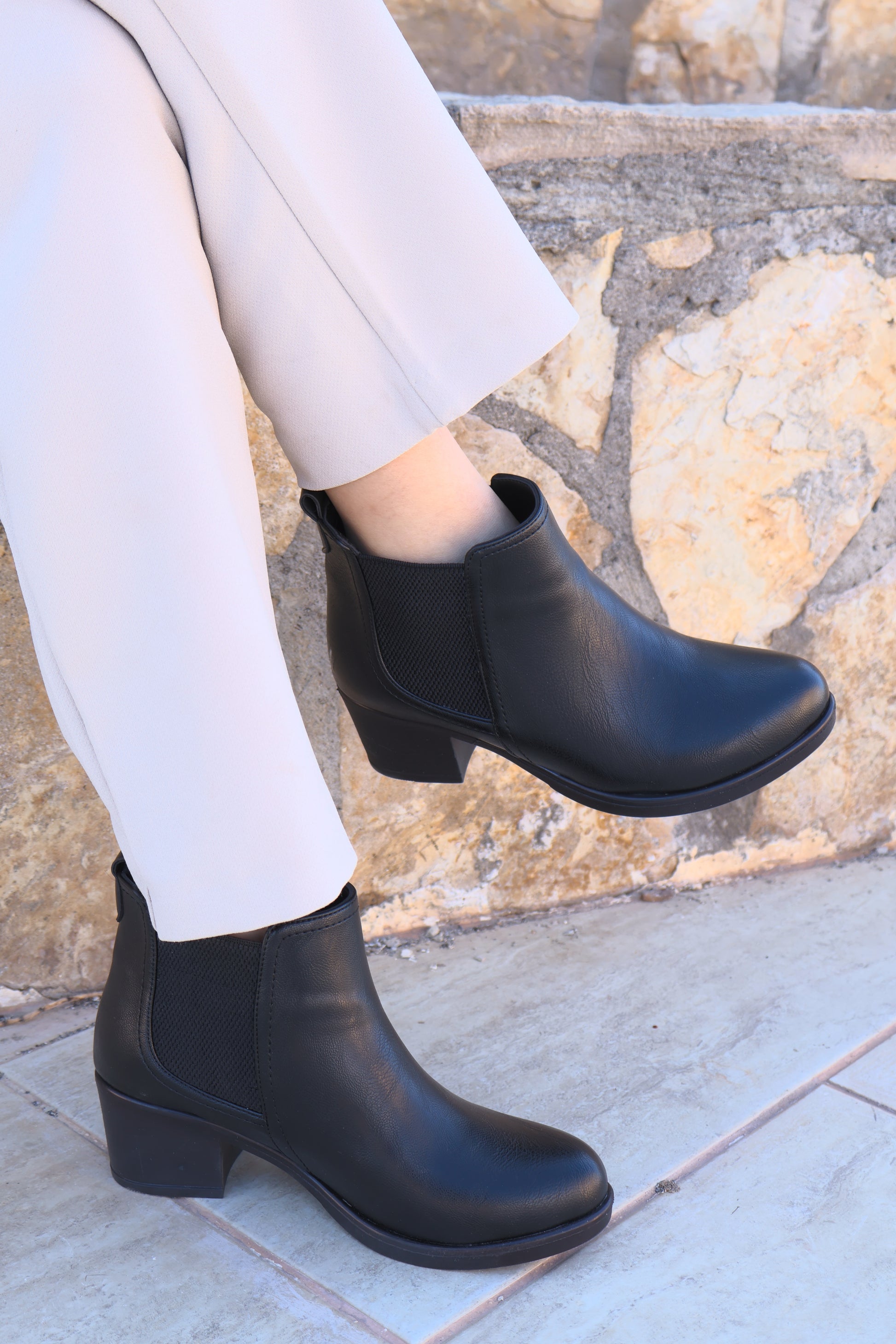 Alura Siyah Topuklu Fermuarlı Kadın Bot