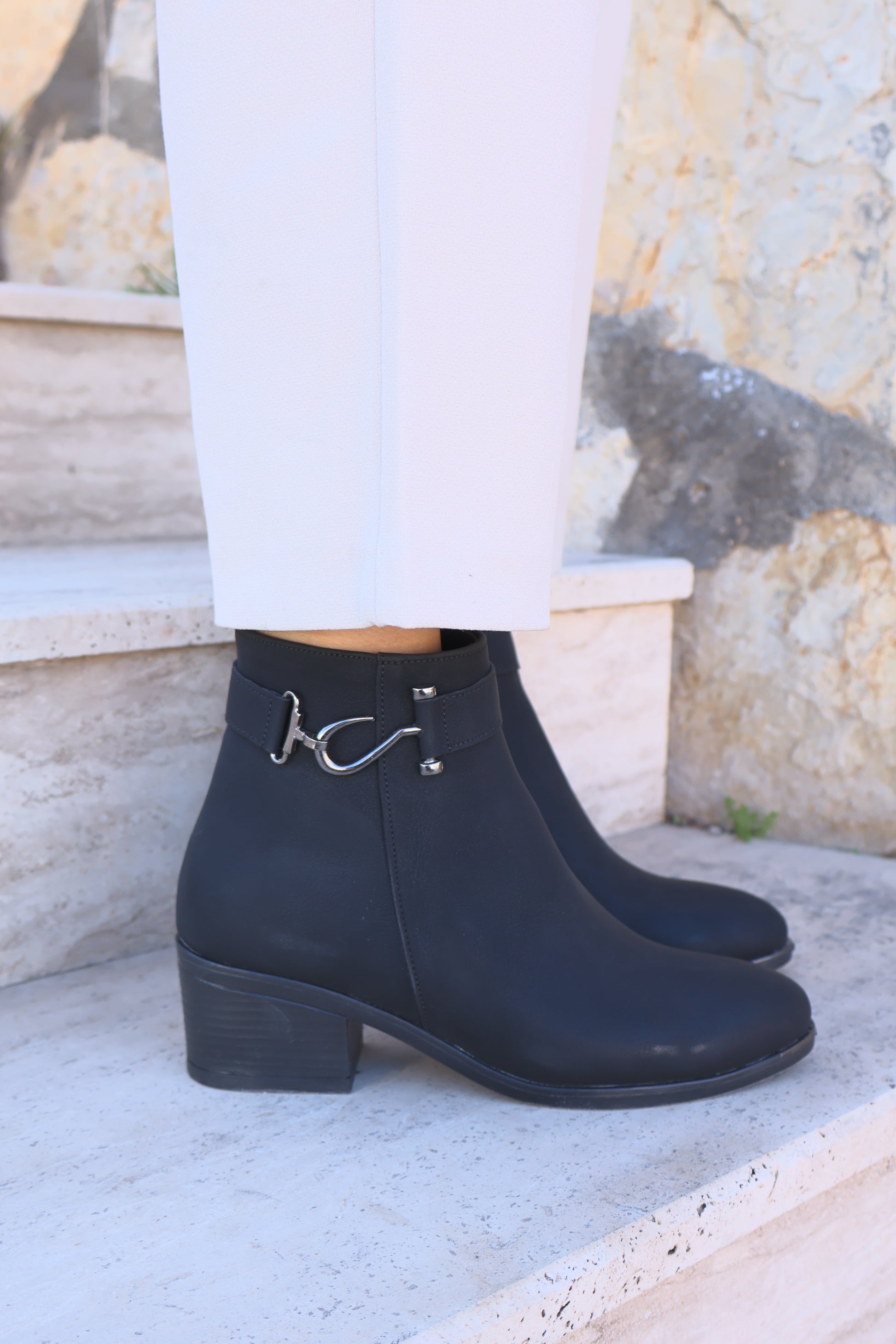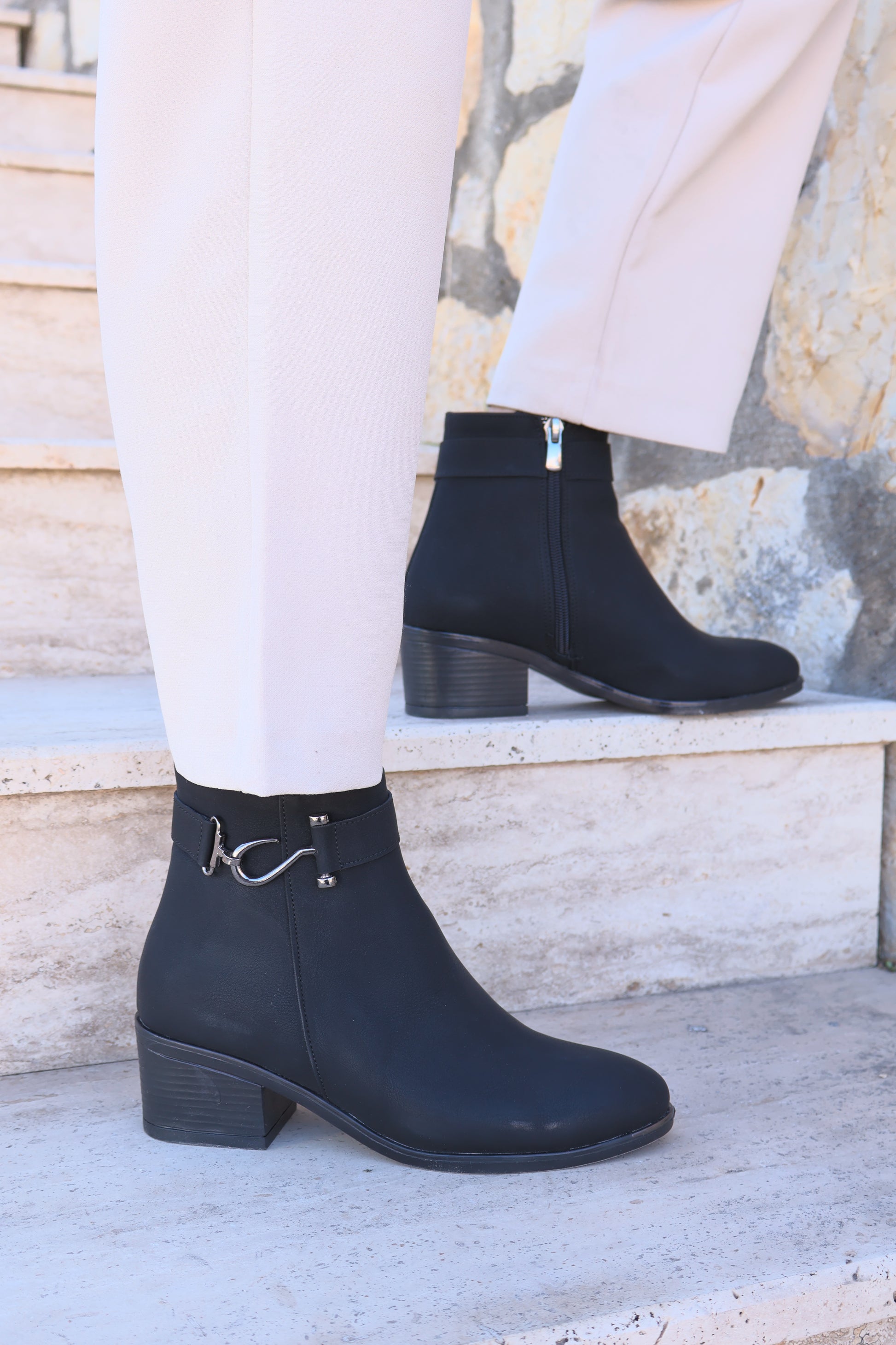 Alura Toka Detaylı Siyah Topuklu Fermuarlı Kadın Bot