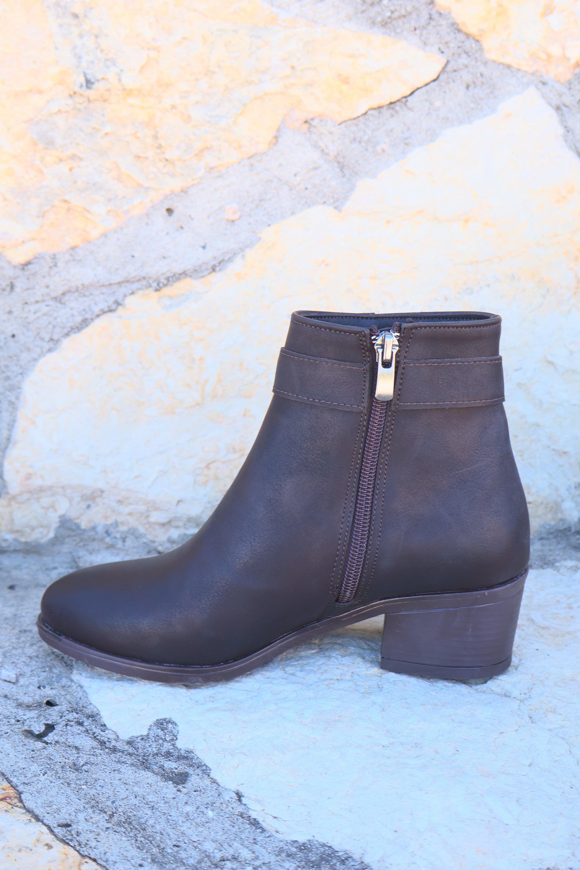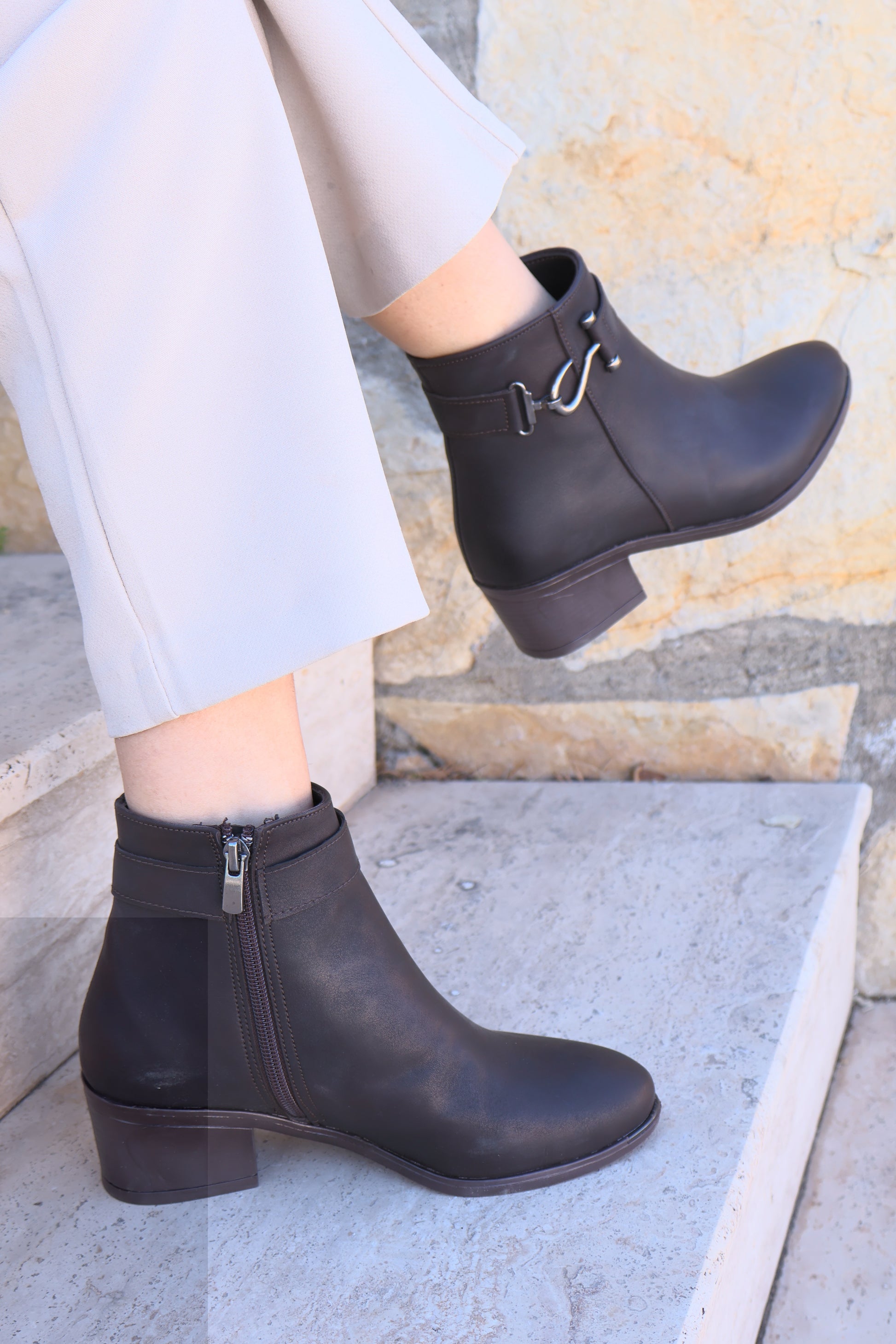 Alura Toka Detaylı Kahverengi Topuklu Fermuarlı Kadın Bot