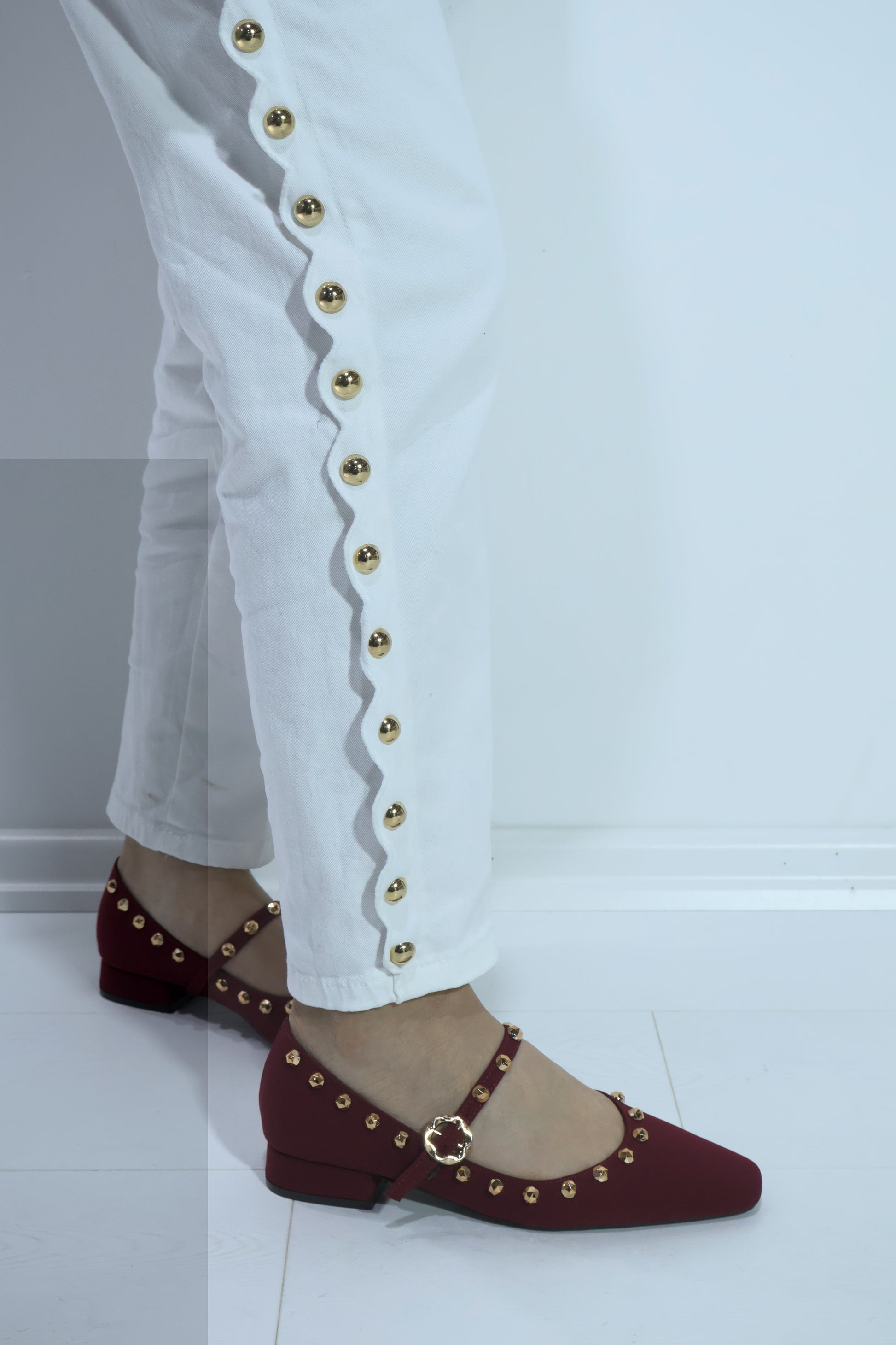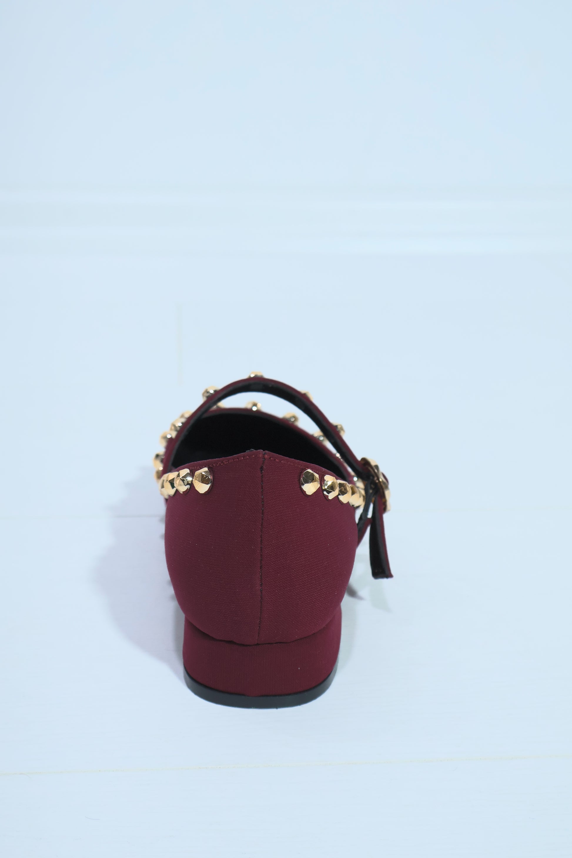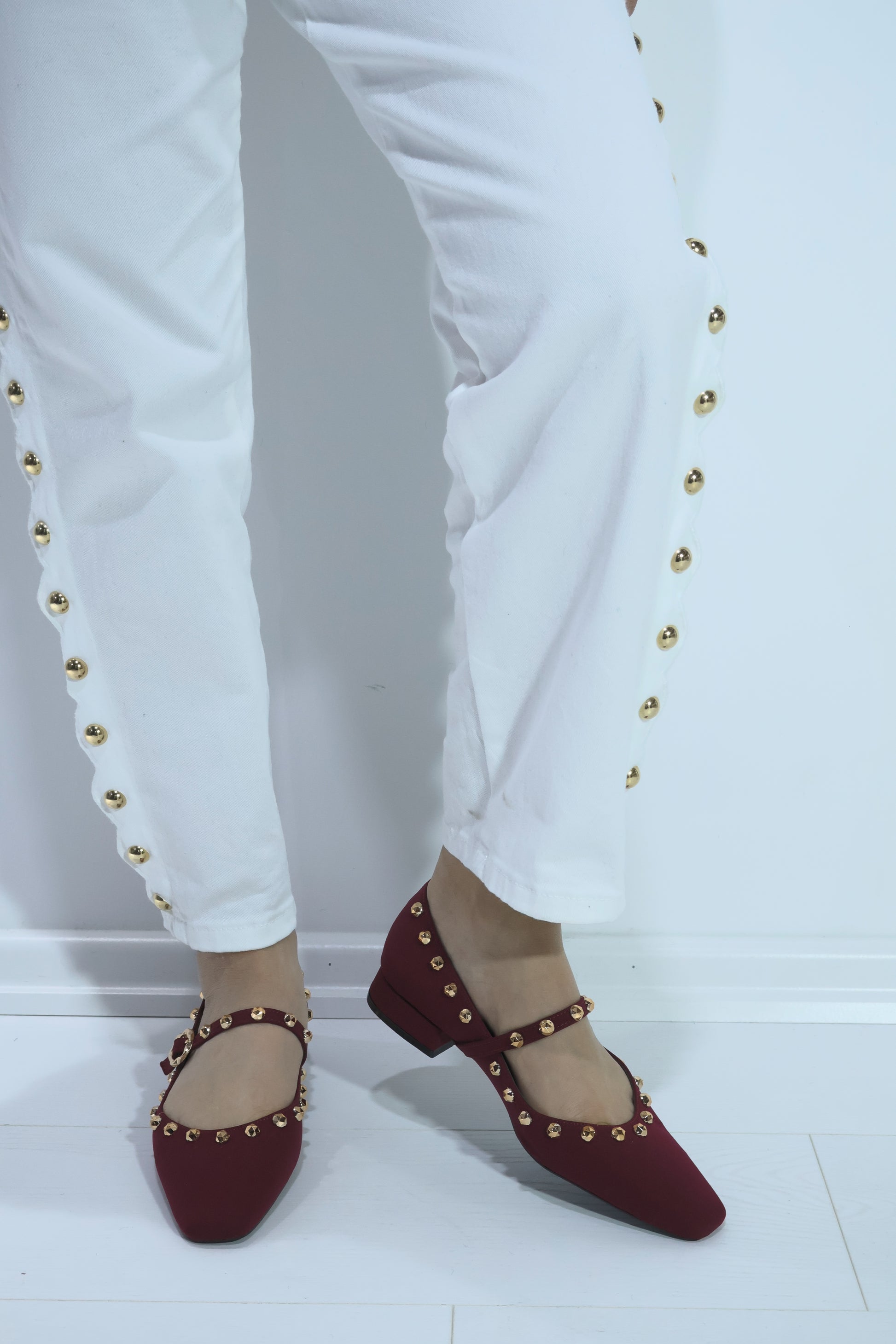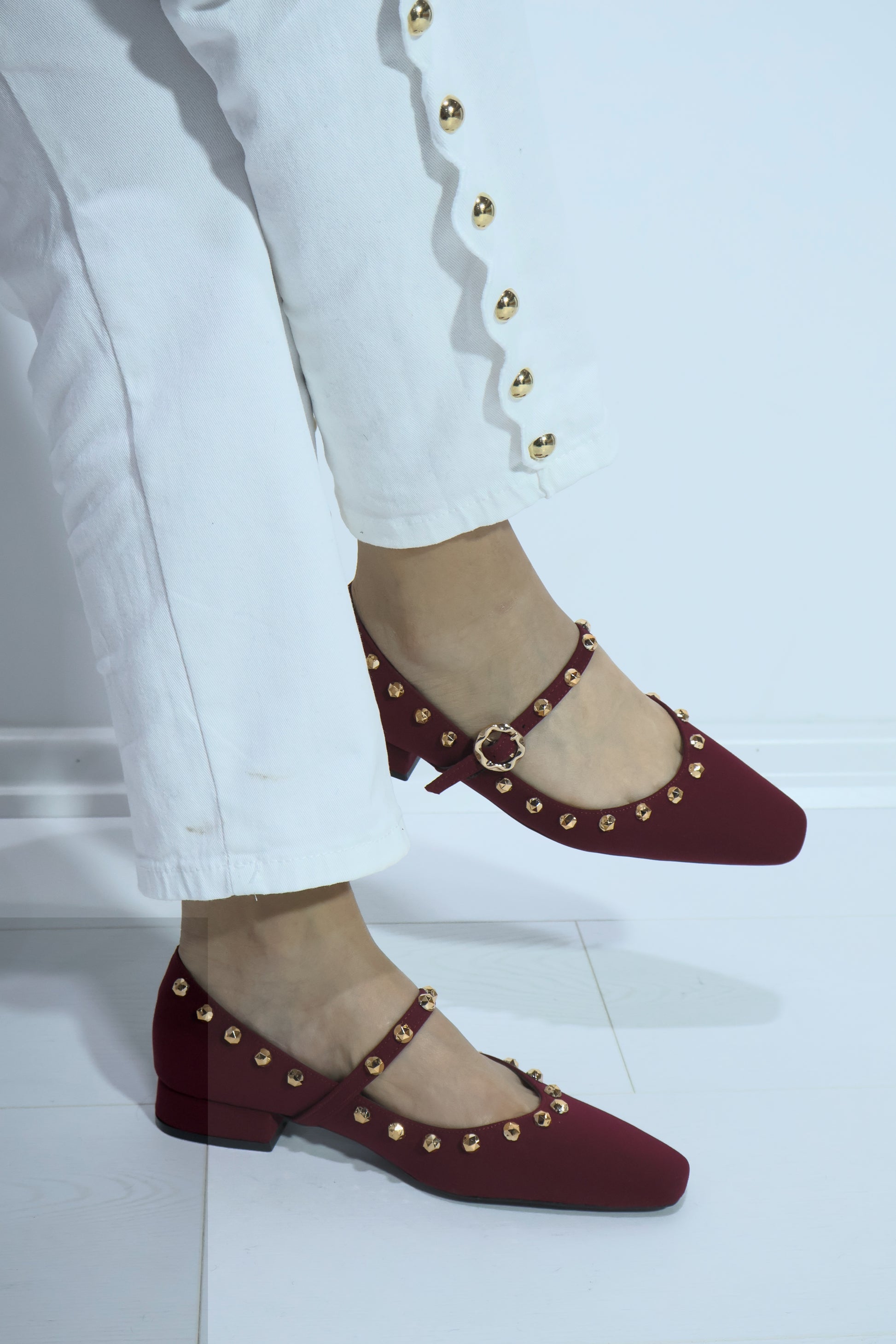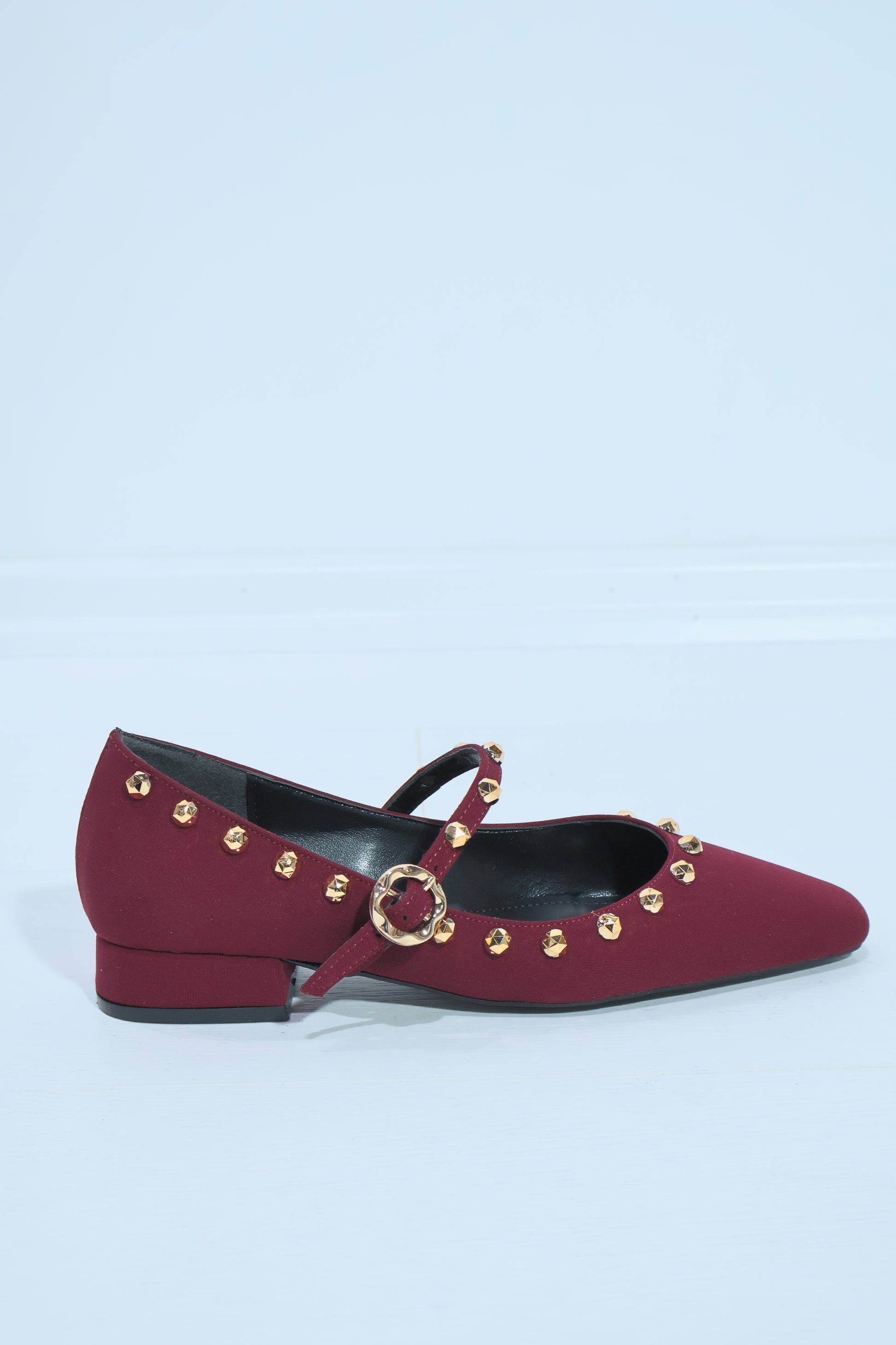 Aura Bordo Zımba Detay Süet Topuklu Babet