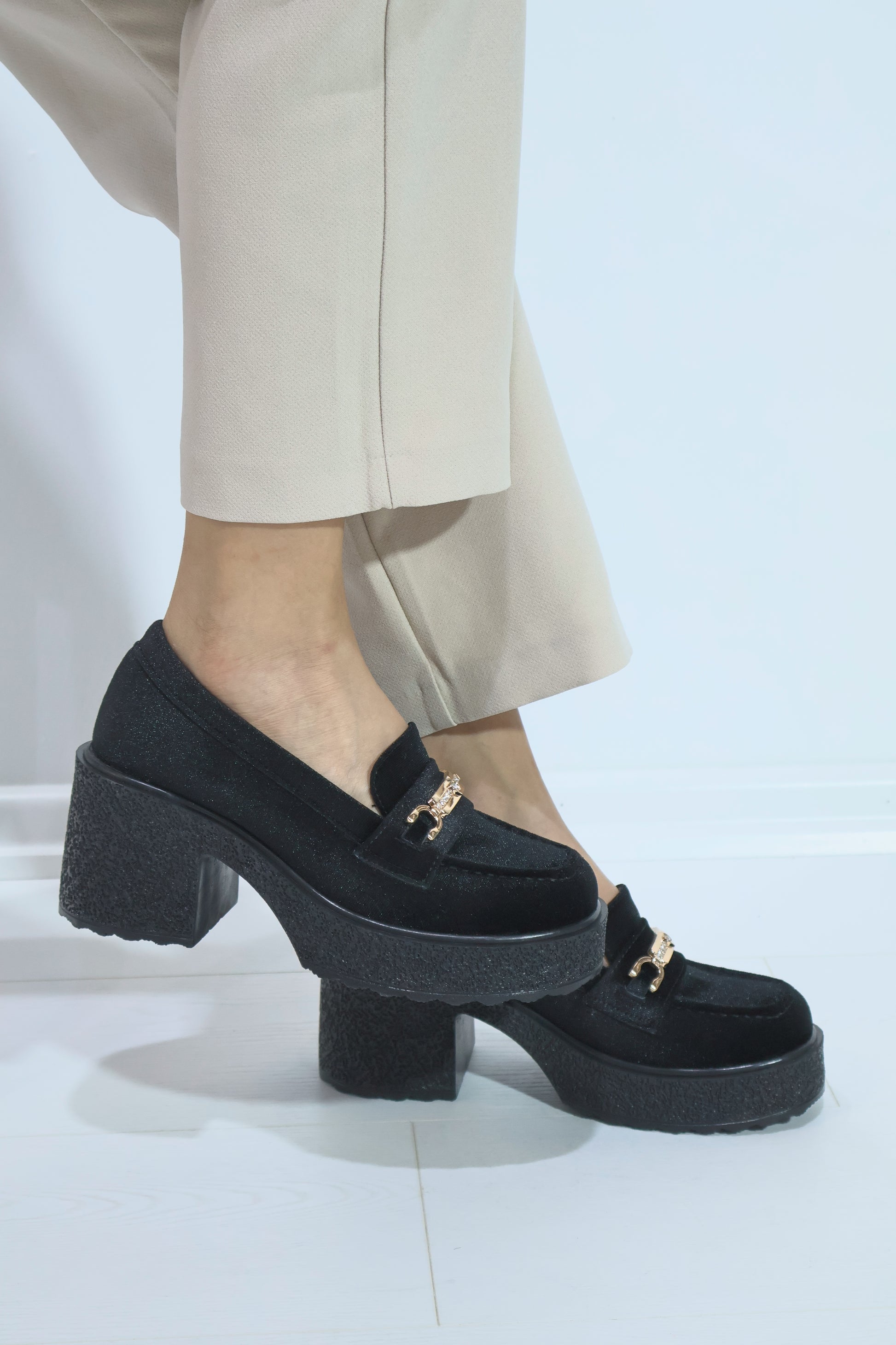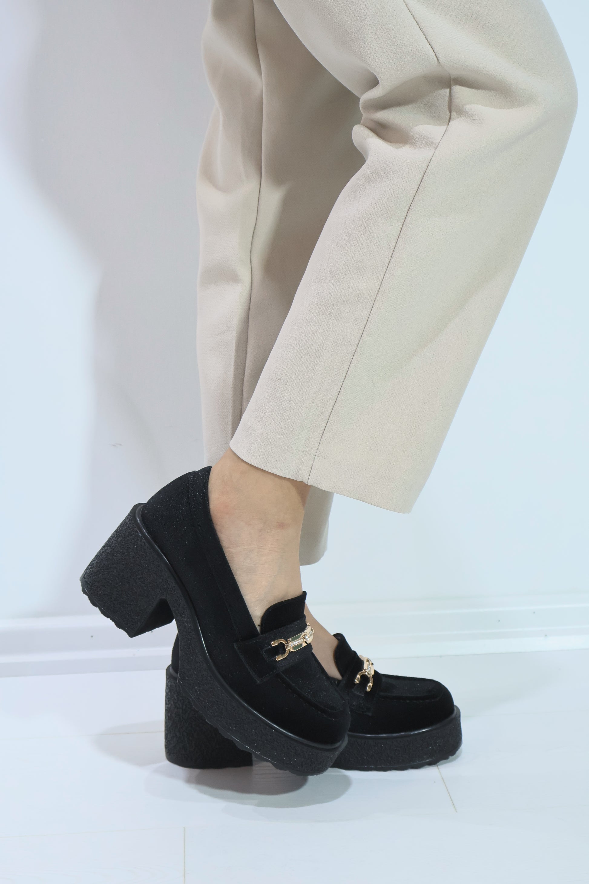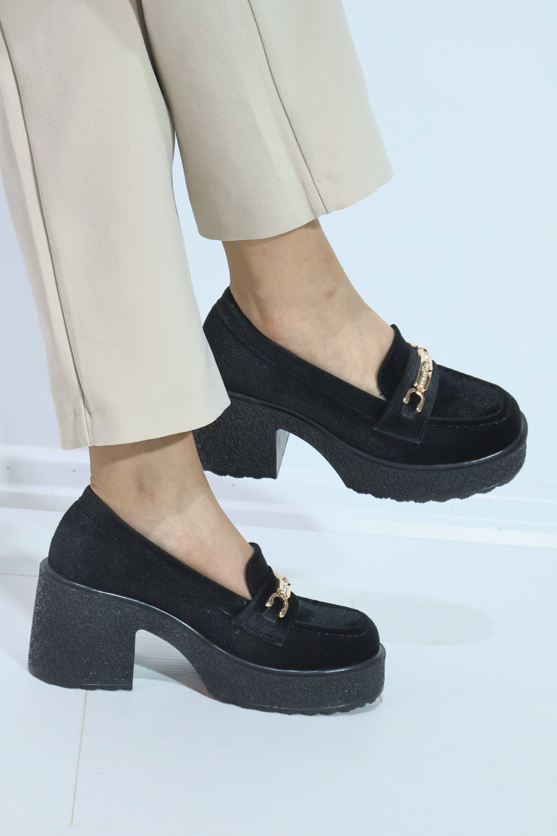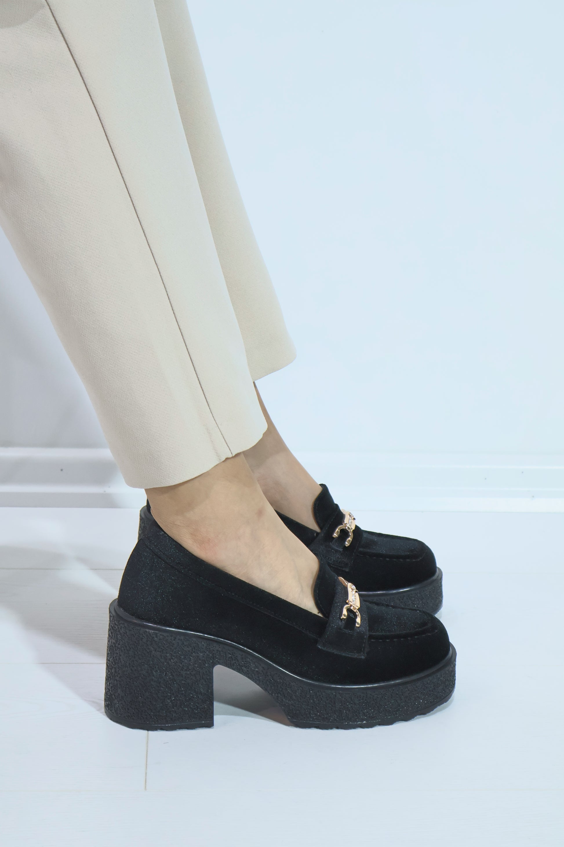 Chıcella Kadife Toka Detaylı Siyah Kadın Laofer