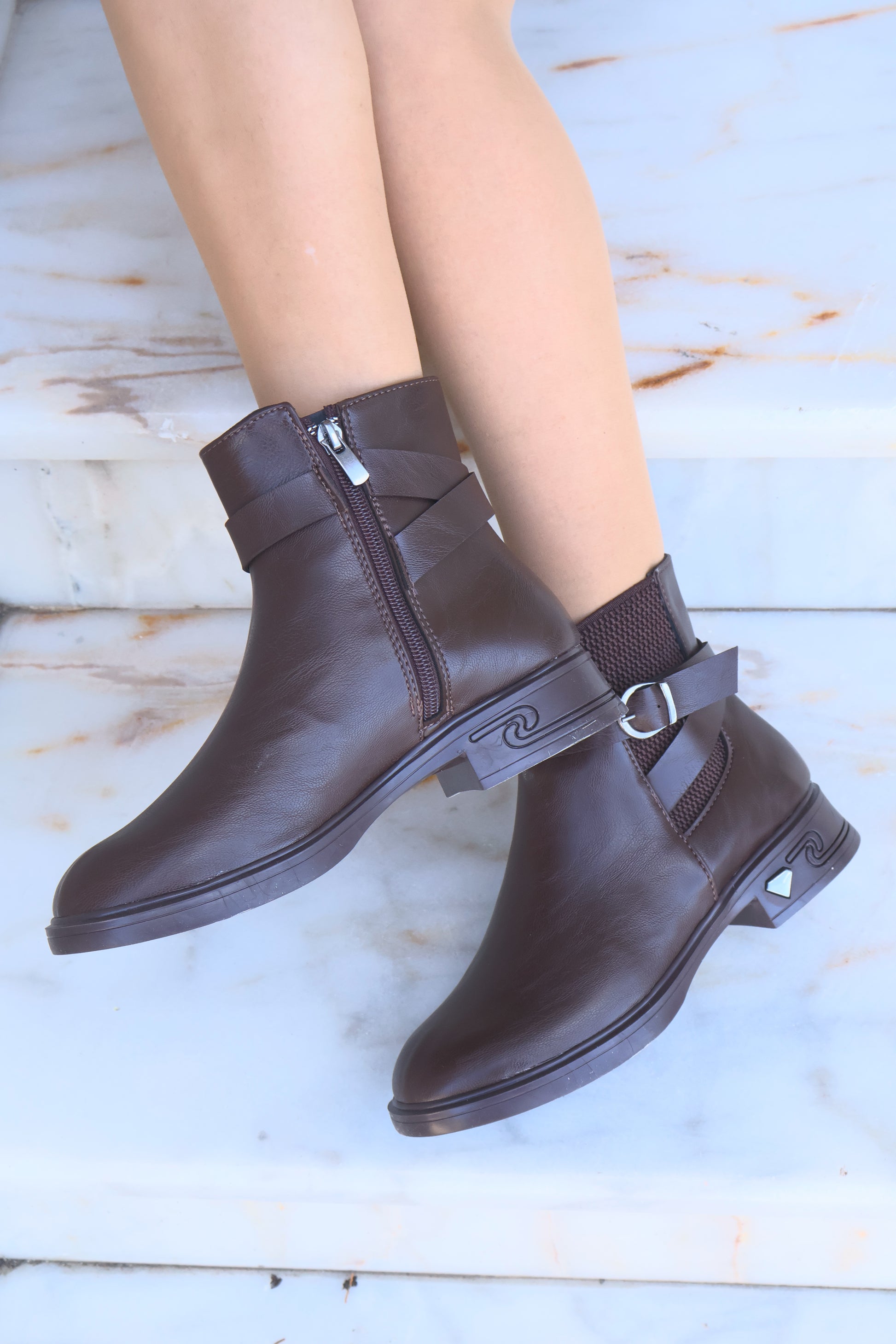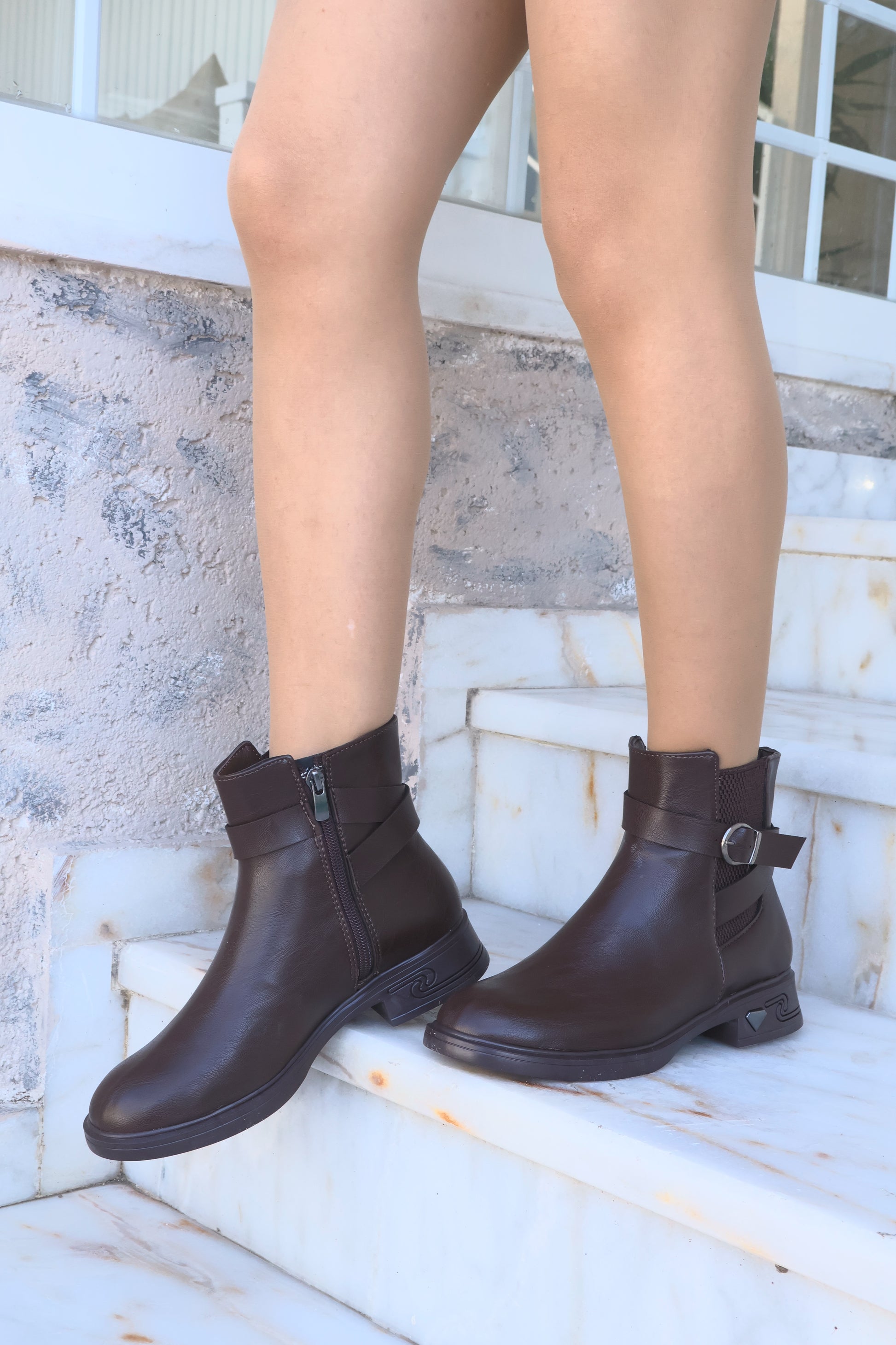 Kadın Tokalı Lastikli Oval Burun Bot