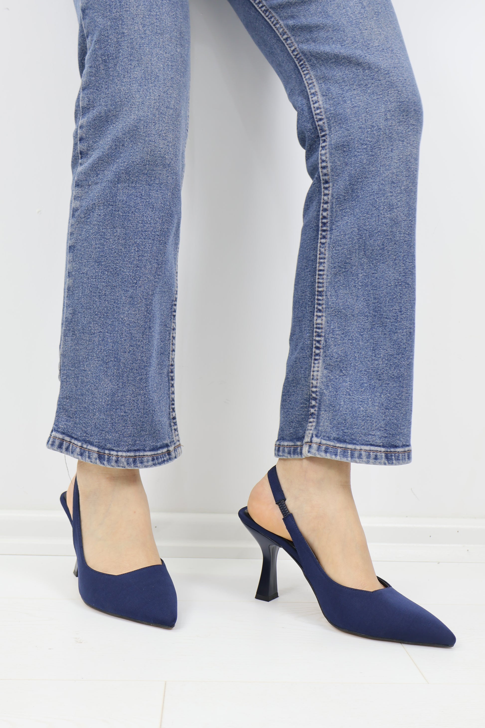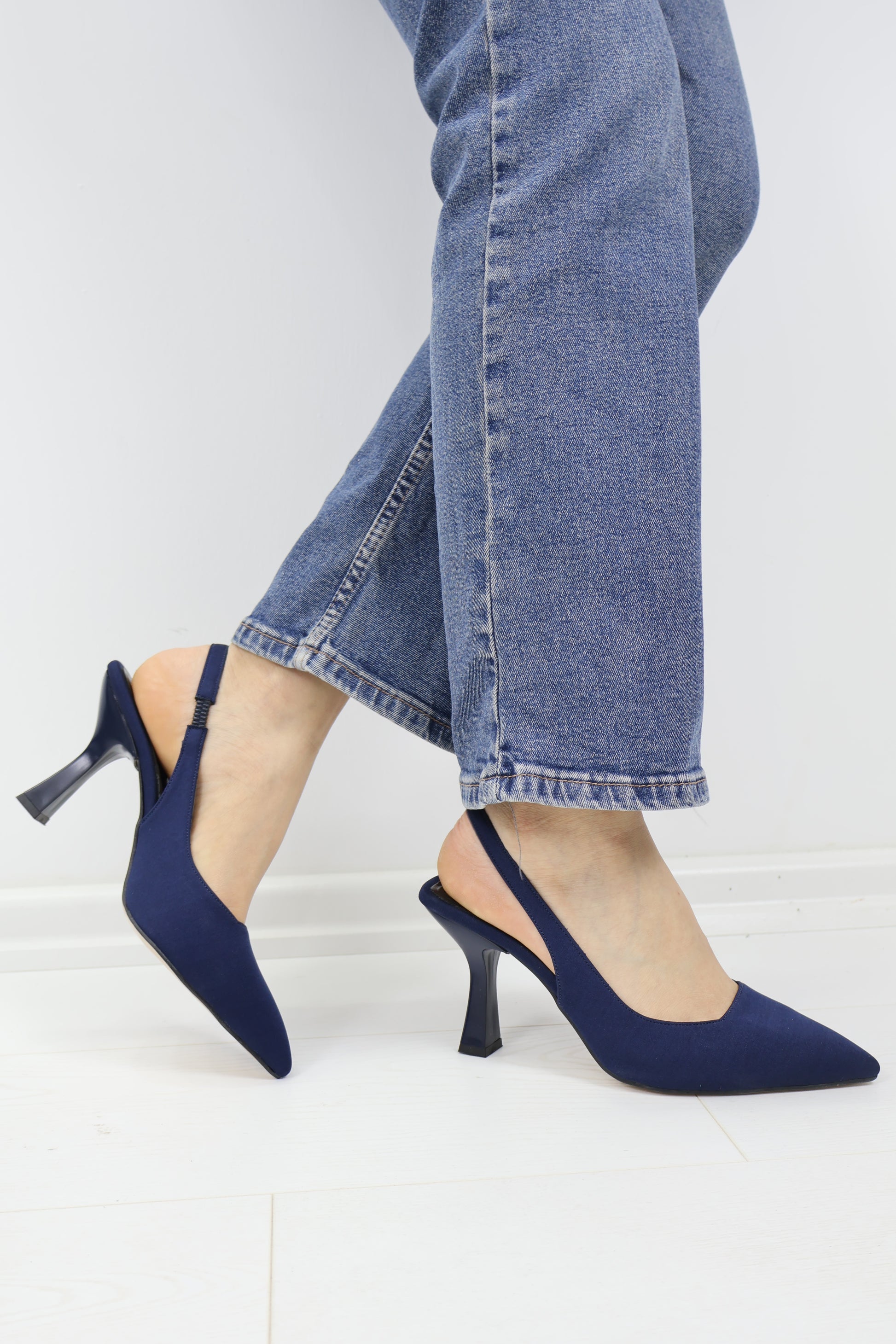 Lacivert Slingback Topuklu Ayakkabı