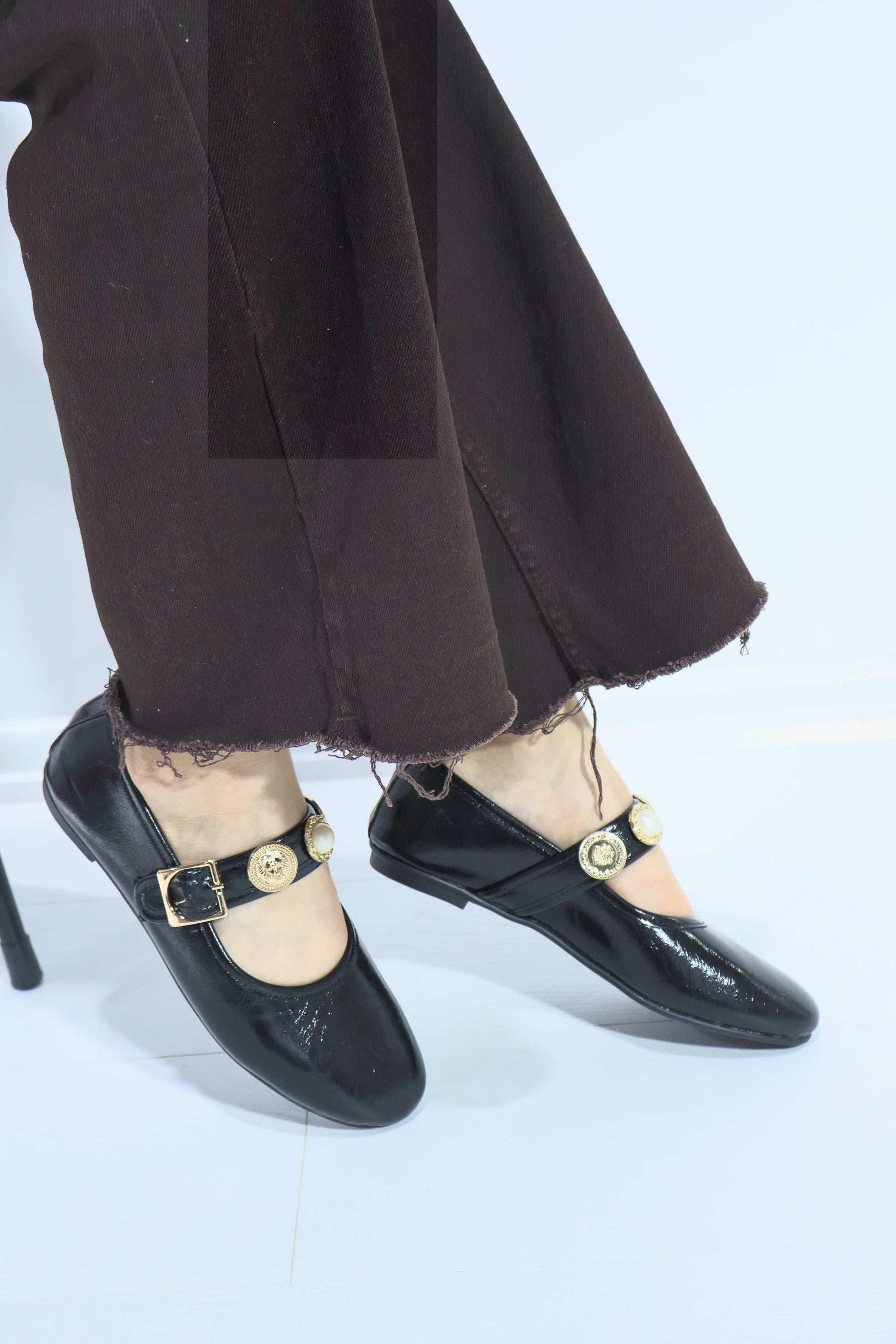 Neza Siyah Rugan Aksesuar Detay Kemerli Kadın Babet Ayakkabı