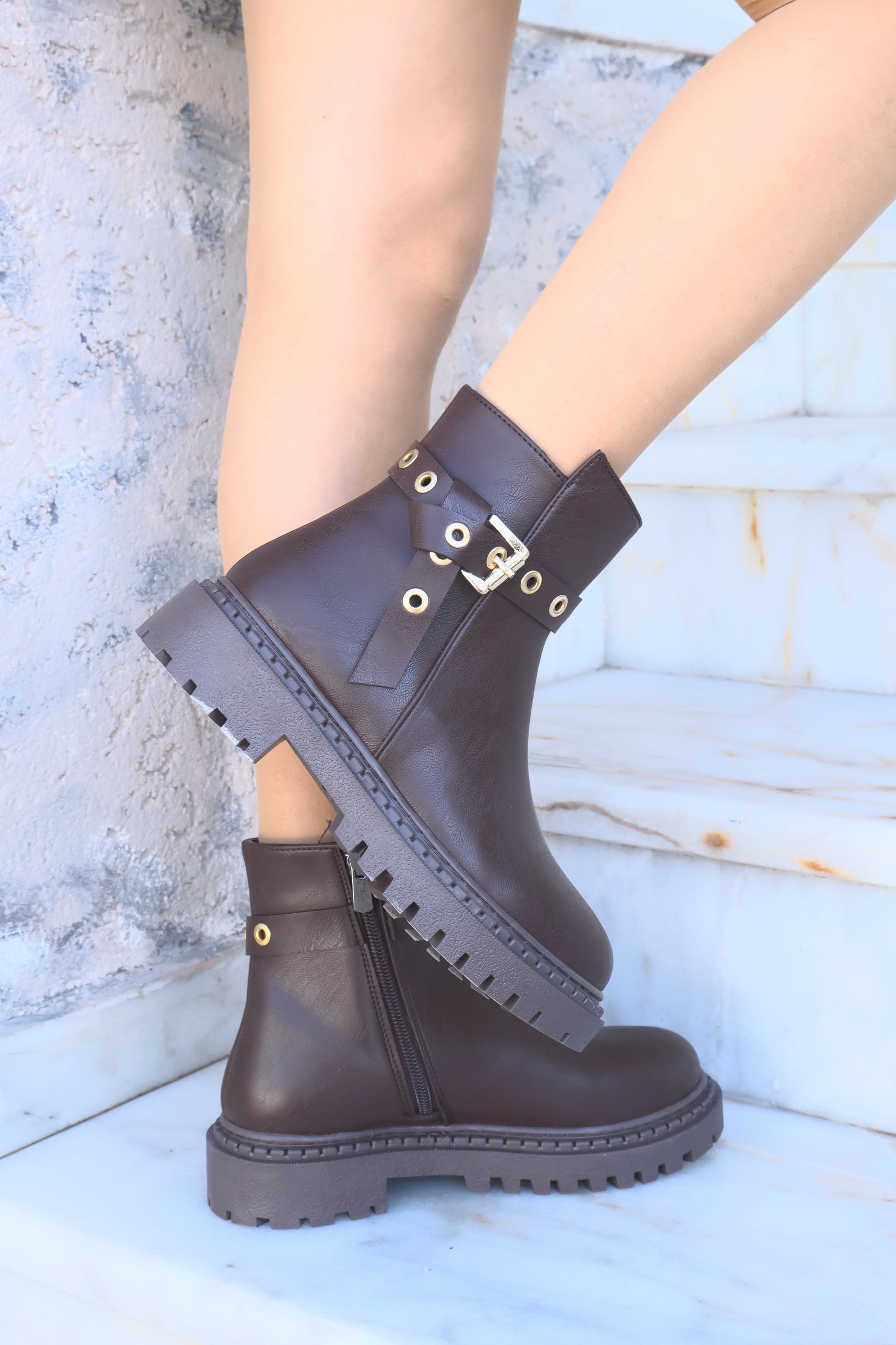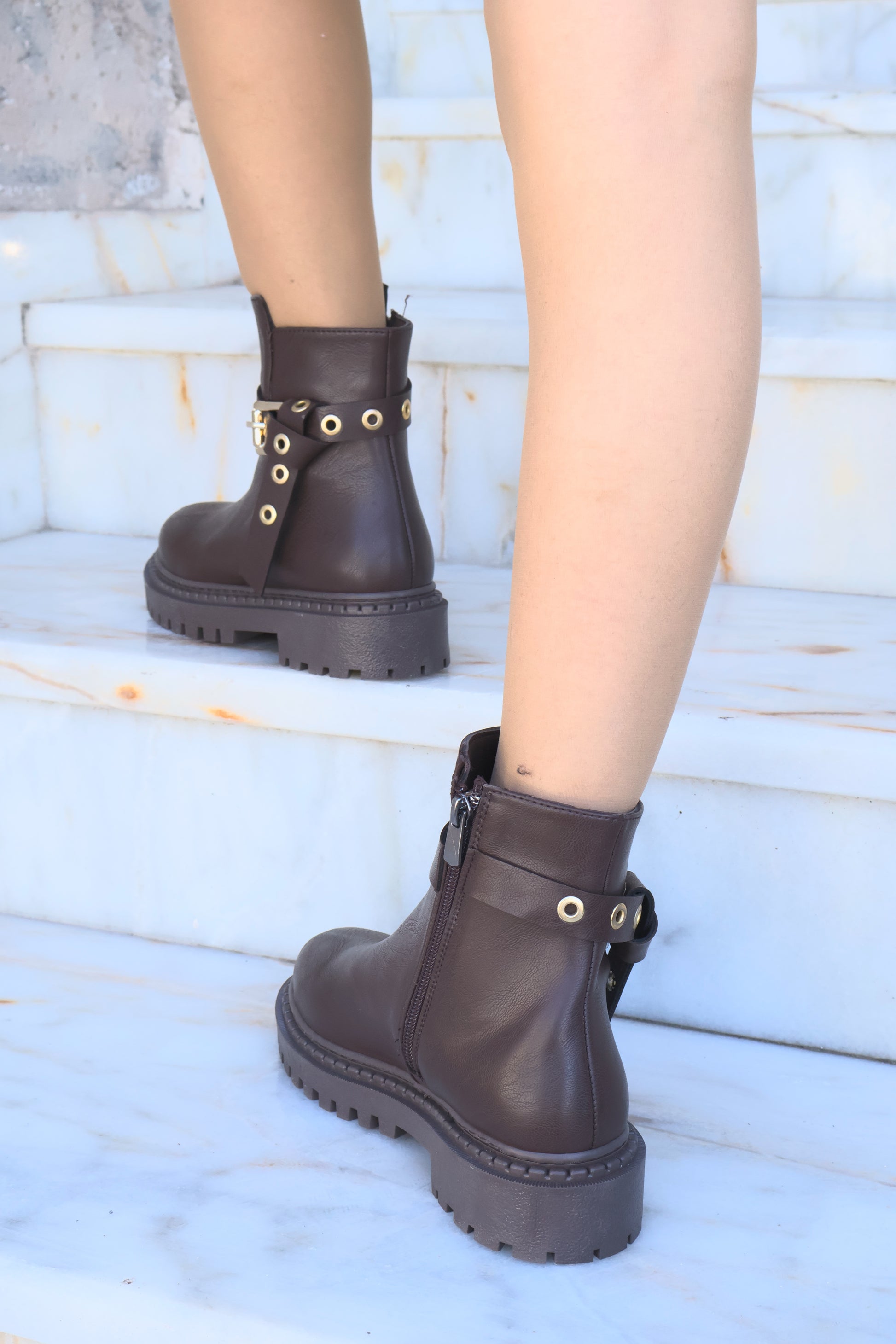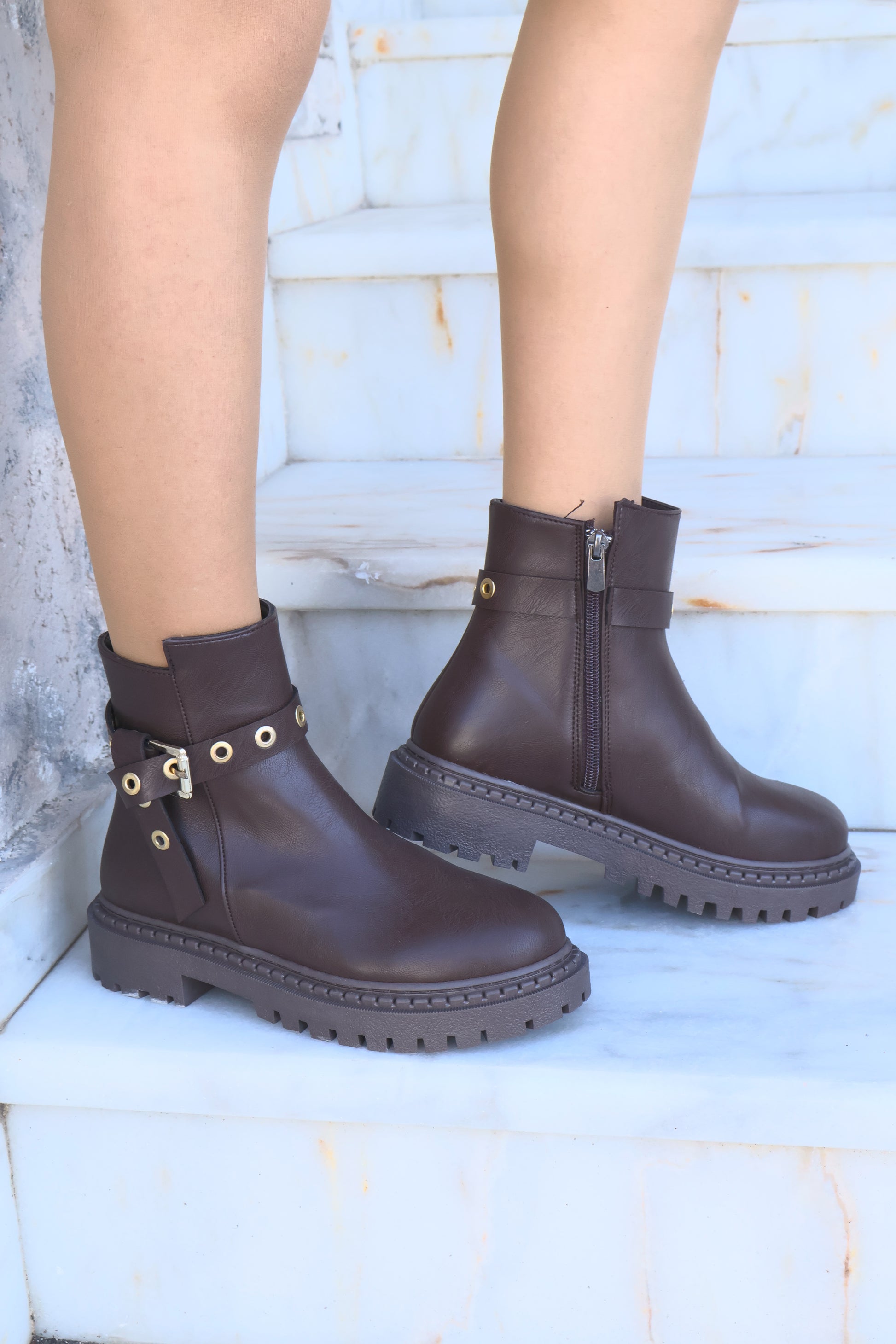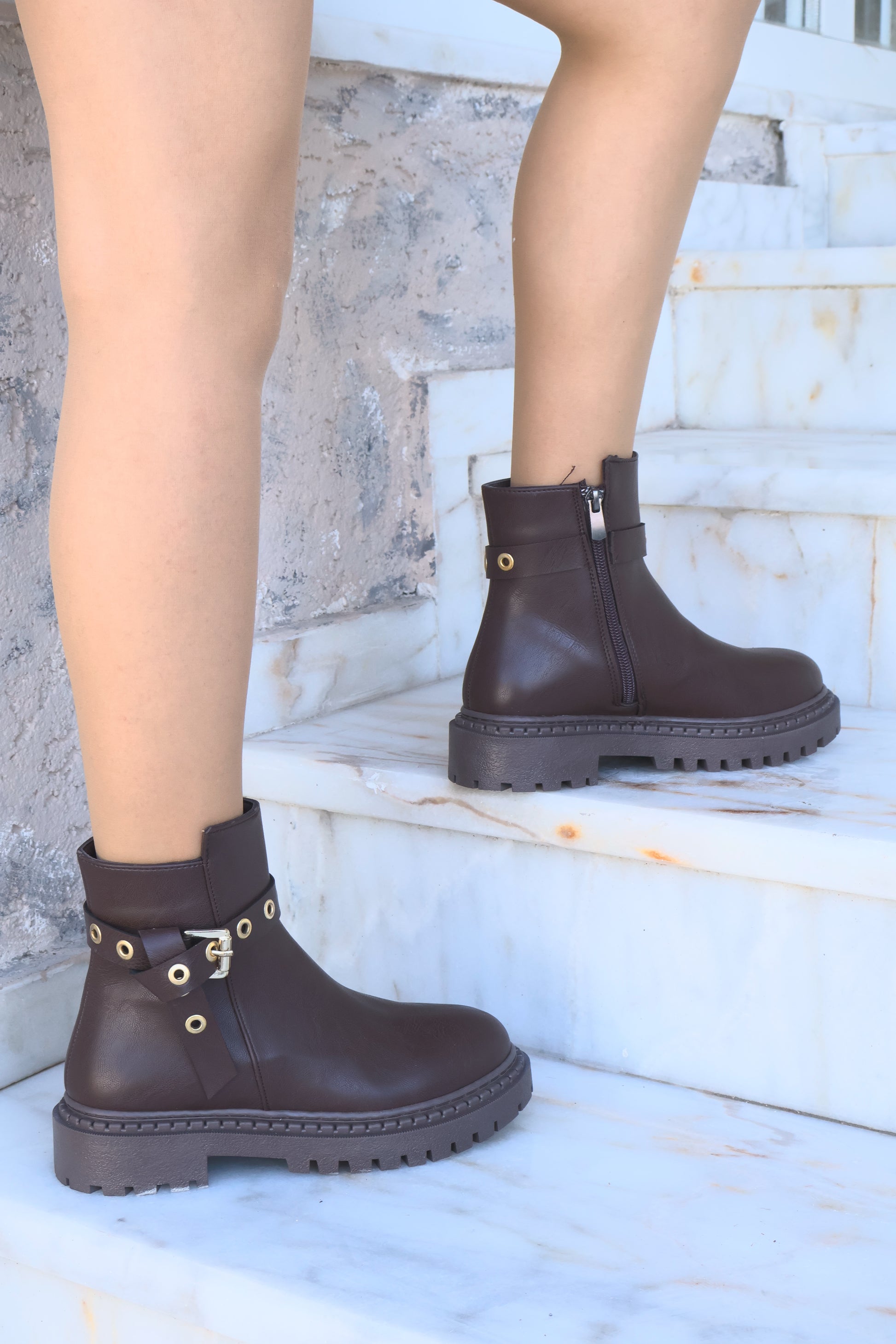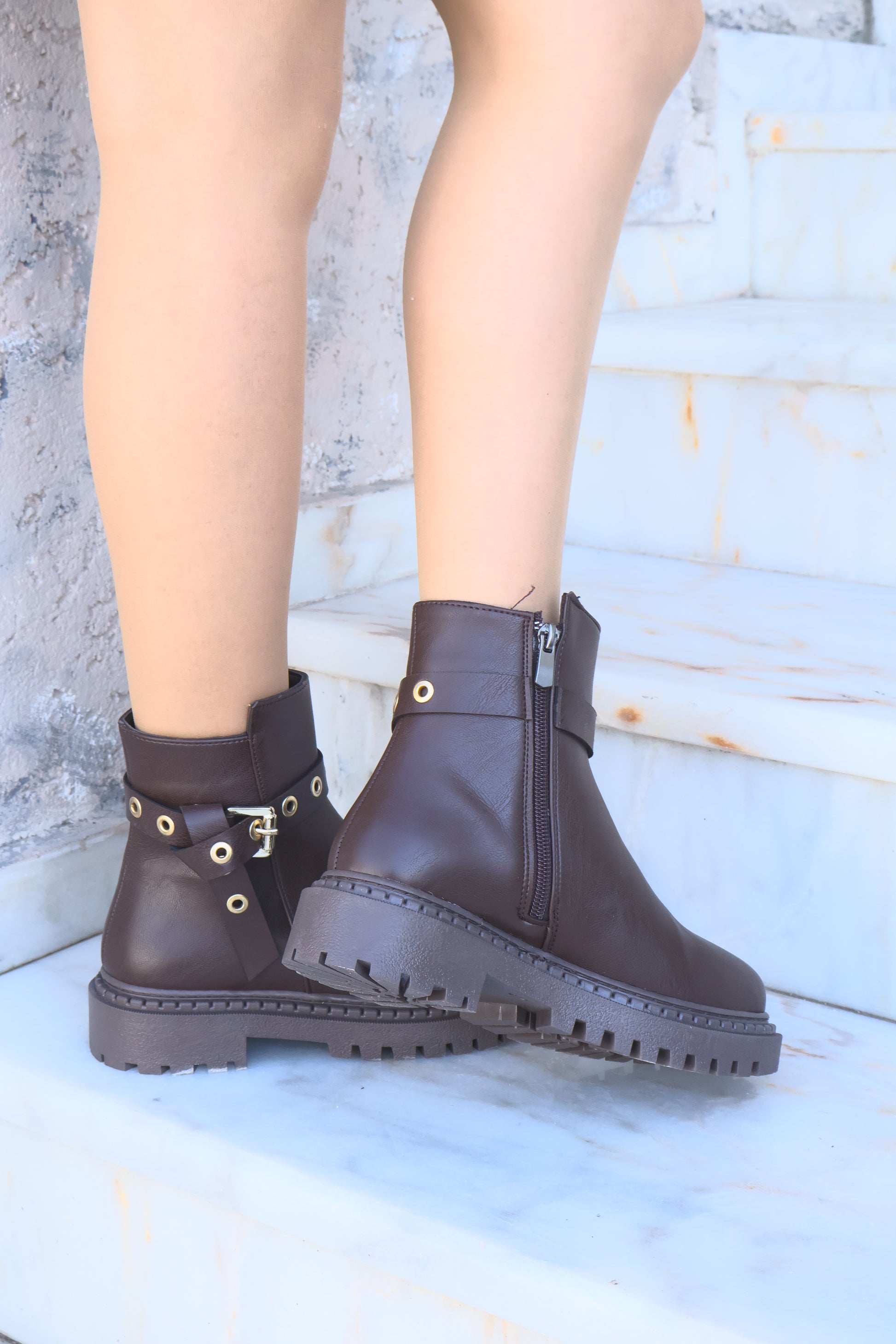 Nico Kahverengi Oval Burun Kemer Detaylı Bot
