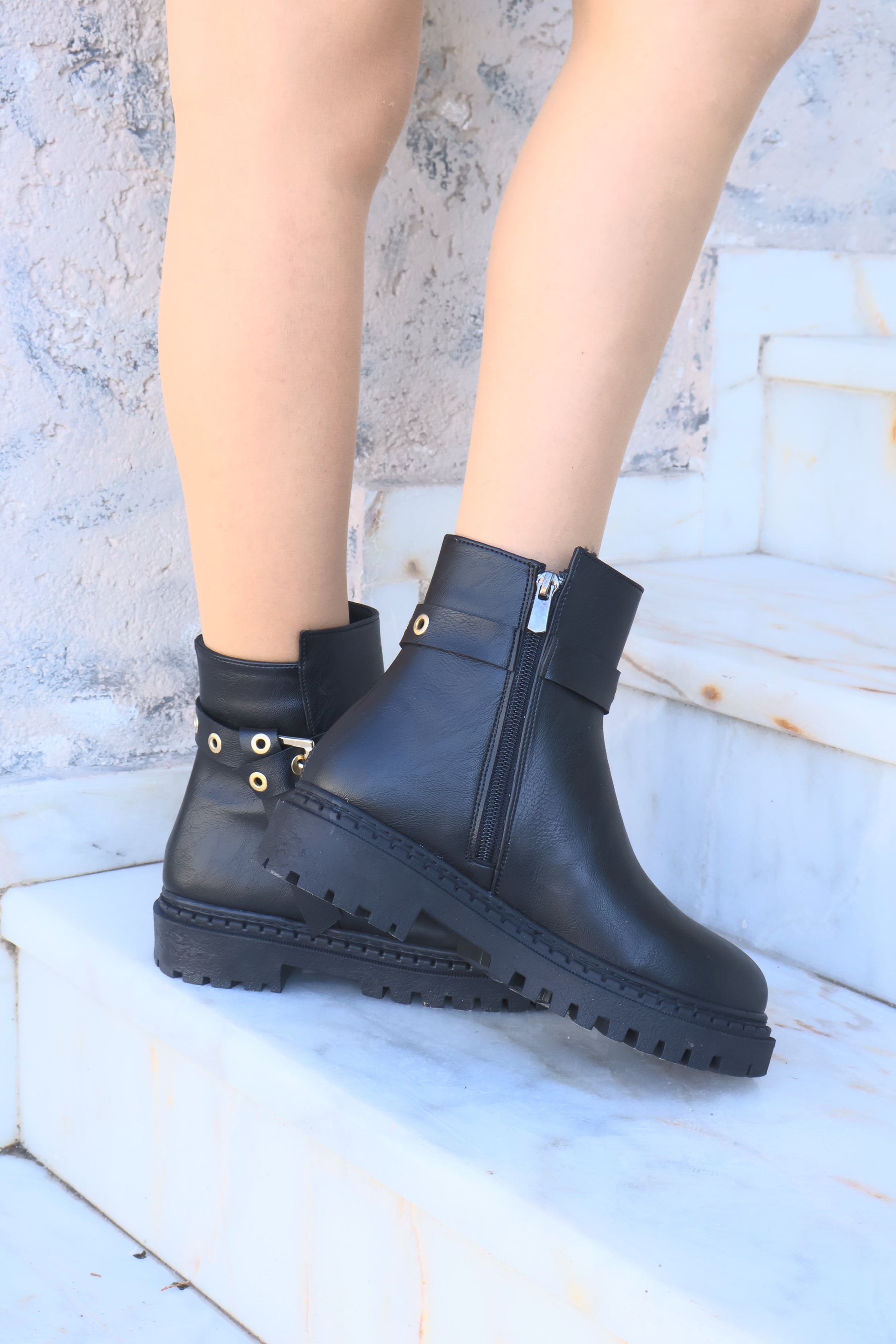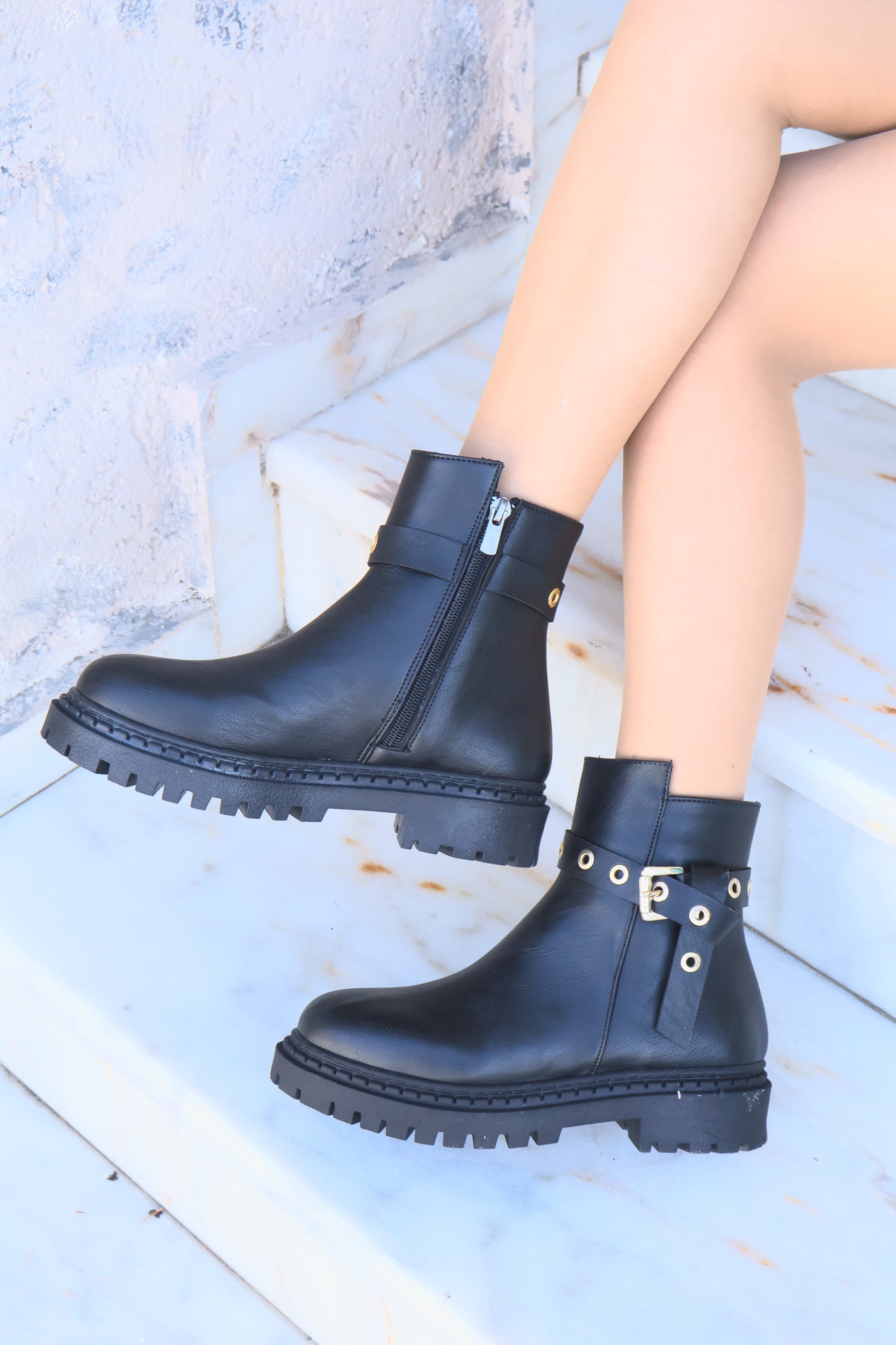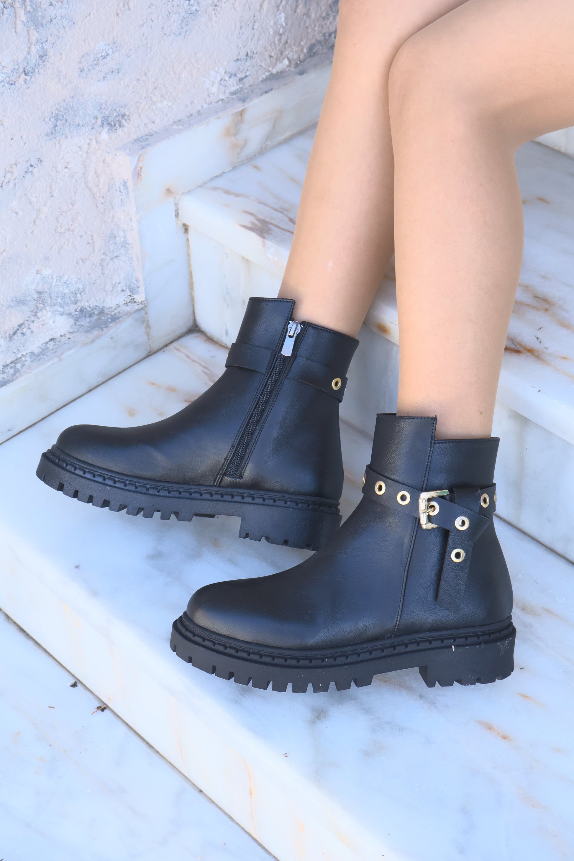 Nico Siyah Oval Burun Kemer Detaylı Bot