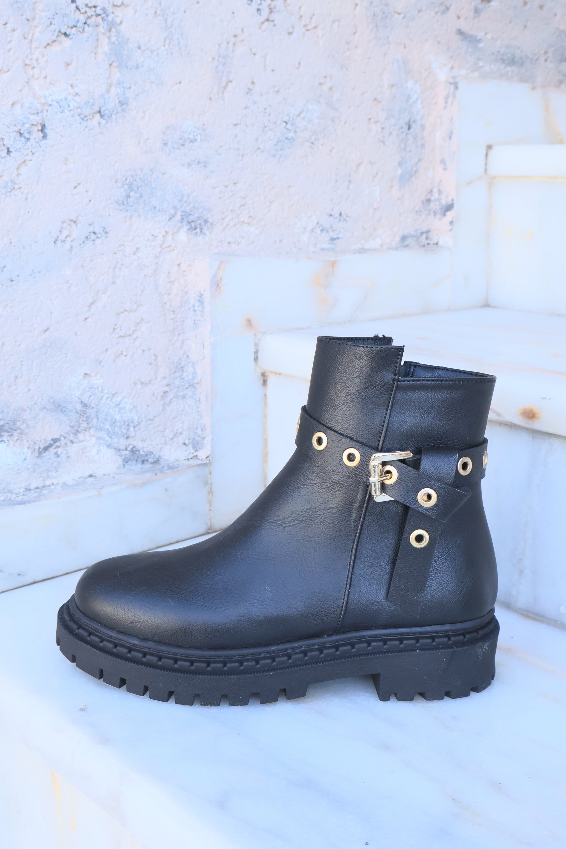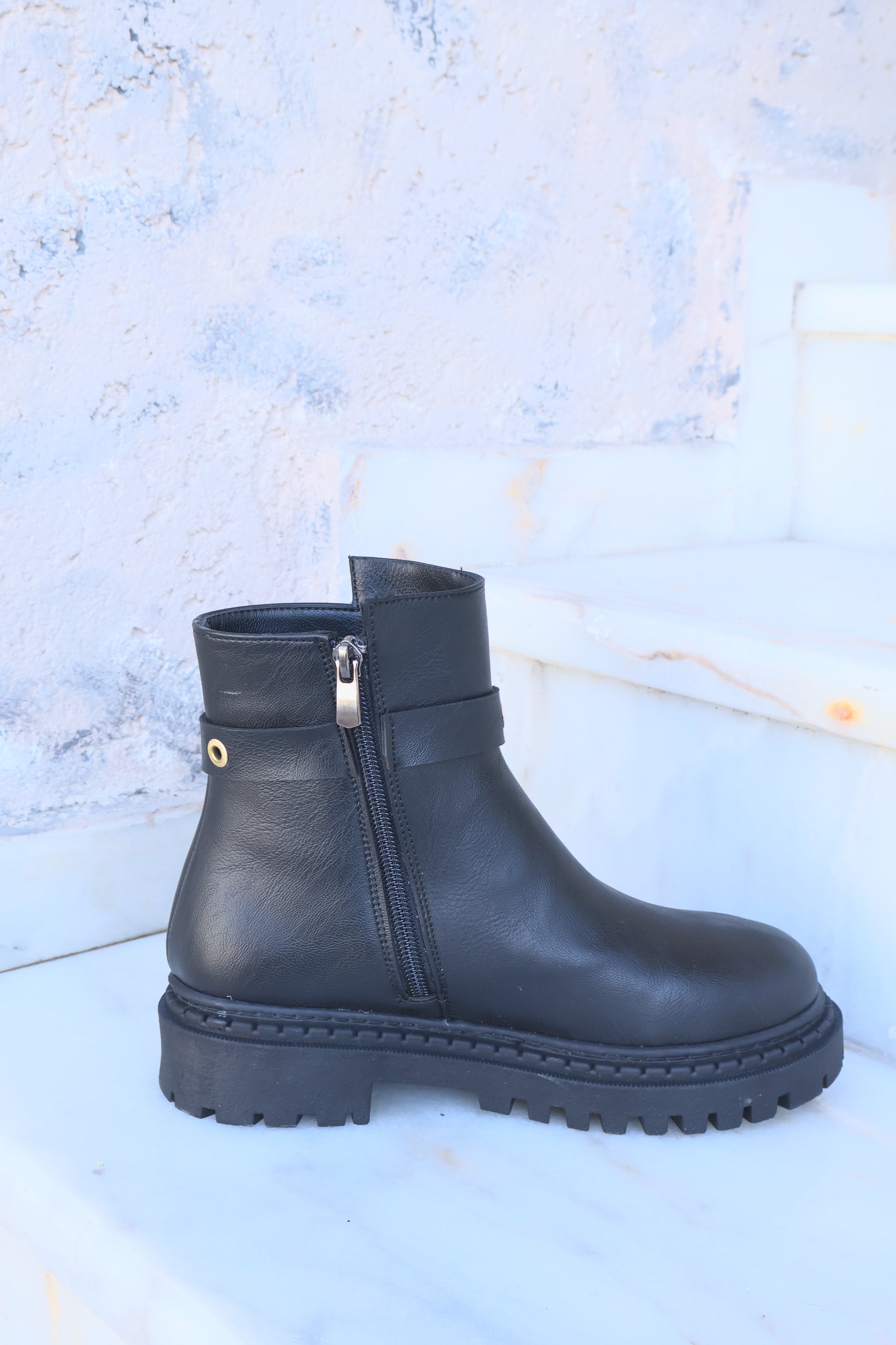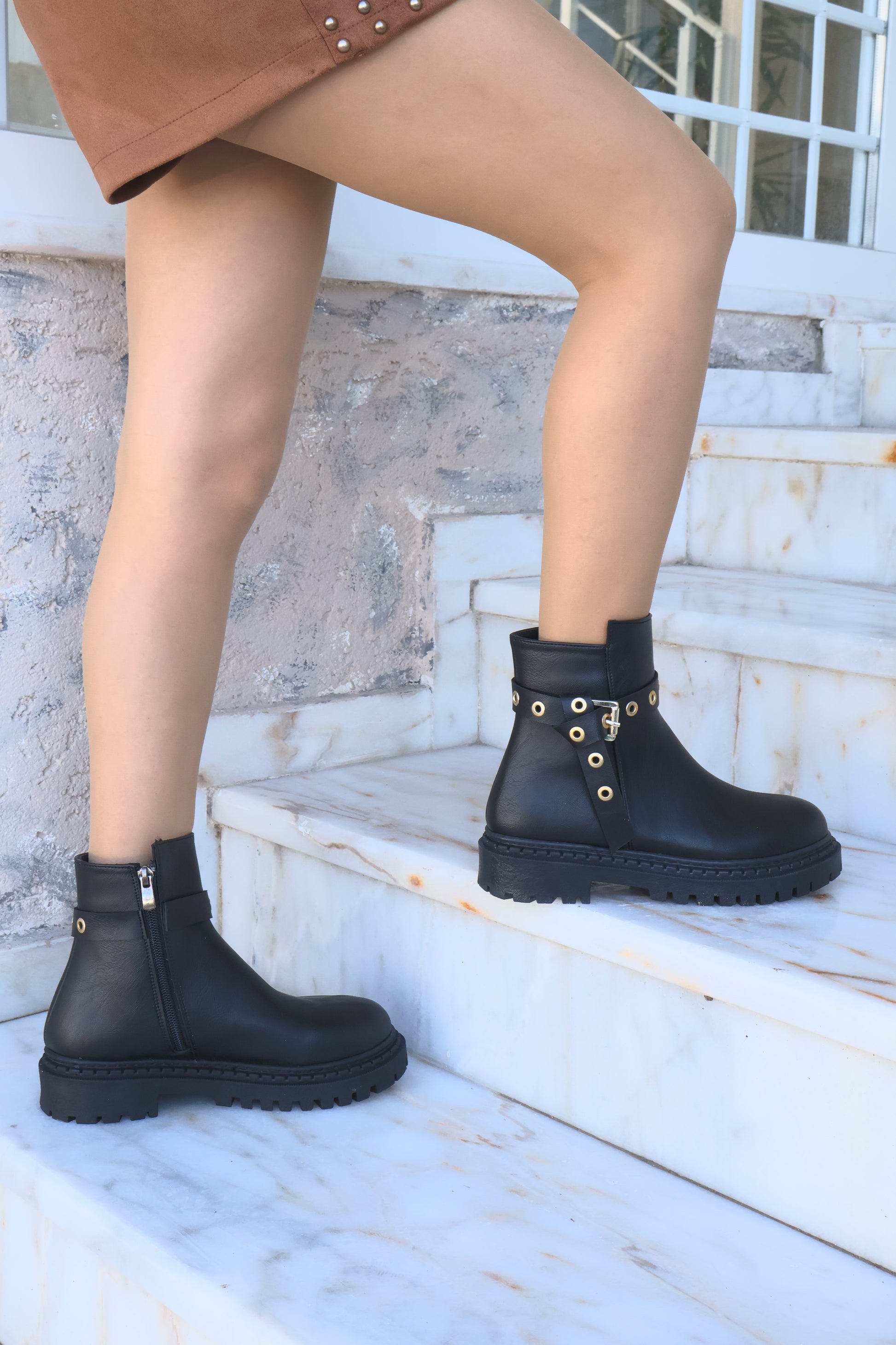 Nico Siyah Oval Burun Kemer Detaylı Bot