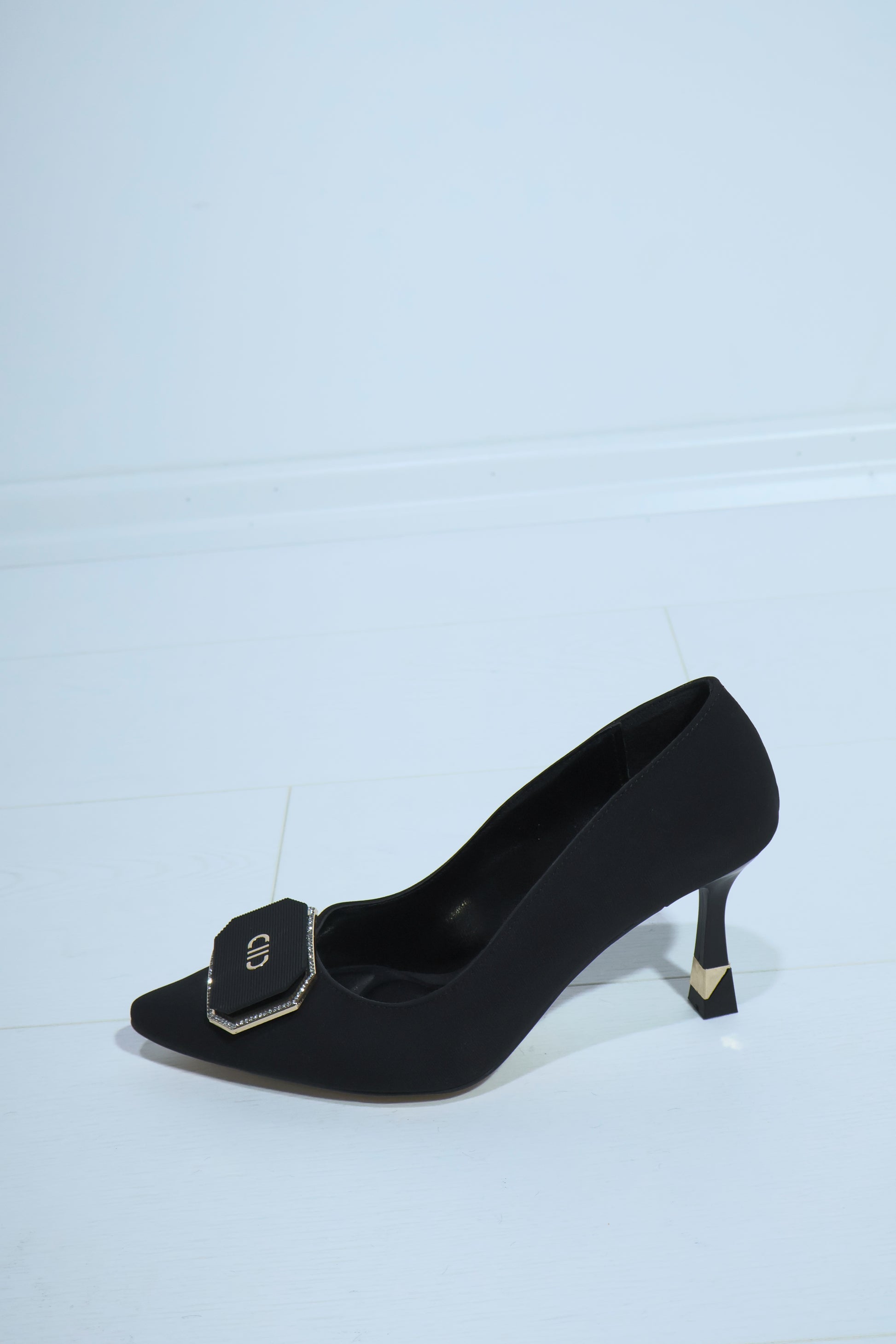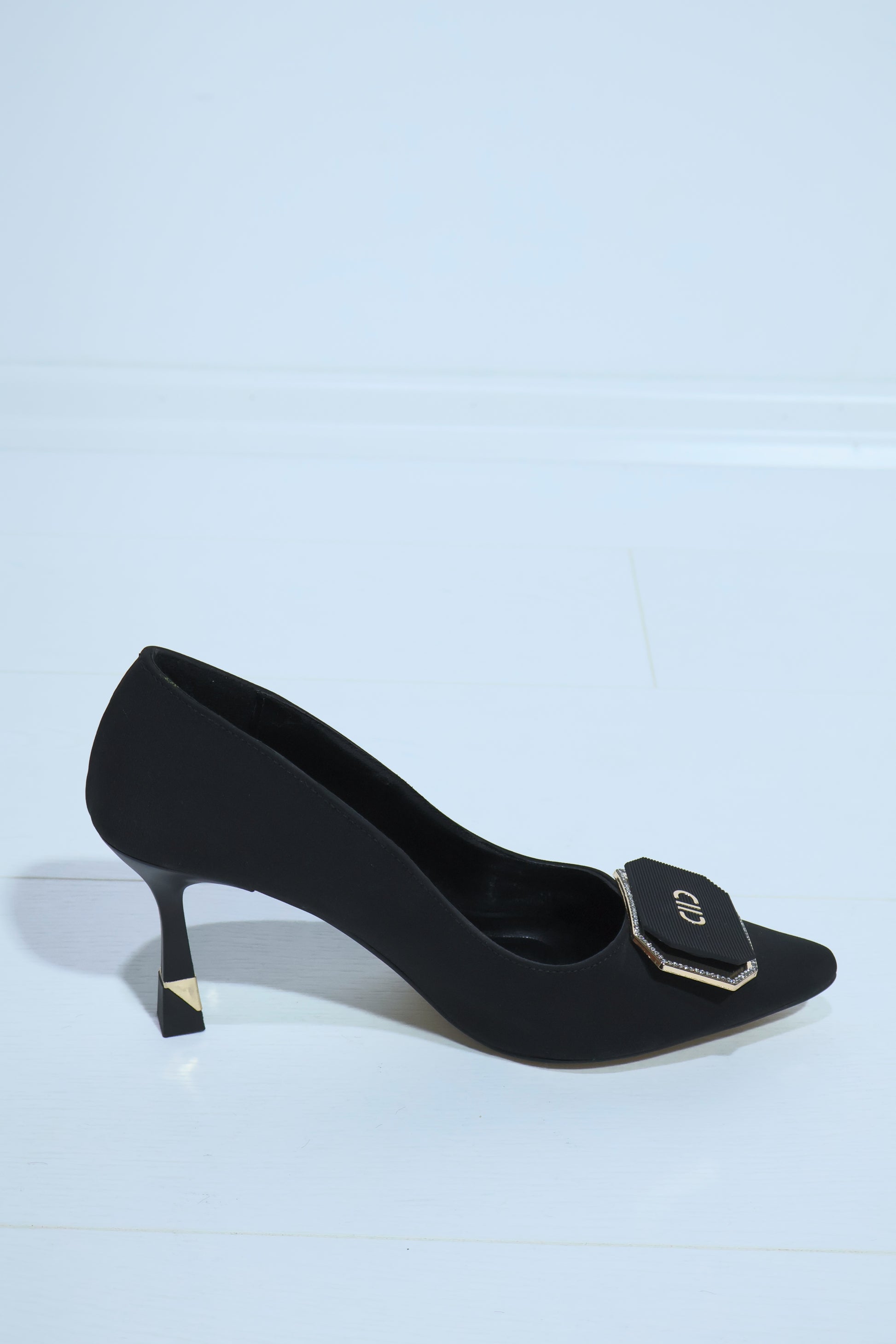Orsina Kadın Siyah Mat Saten Tokalı Topuklu Ayakkabı