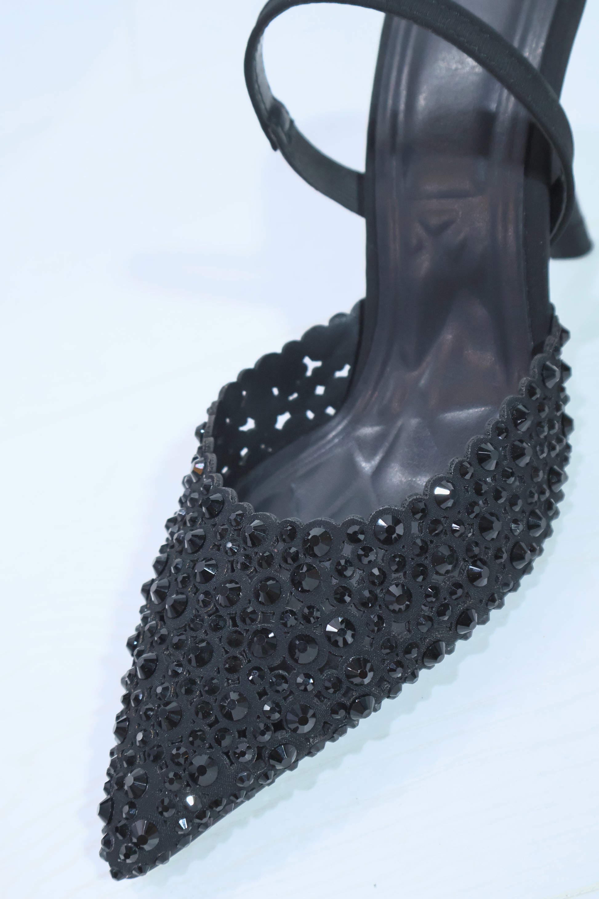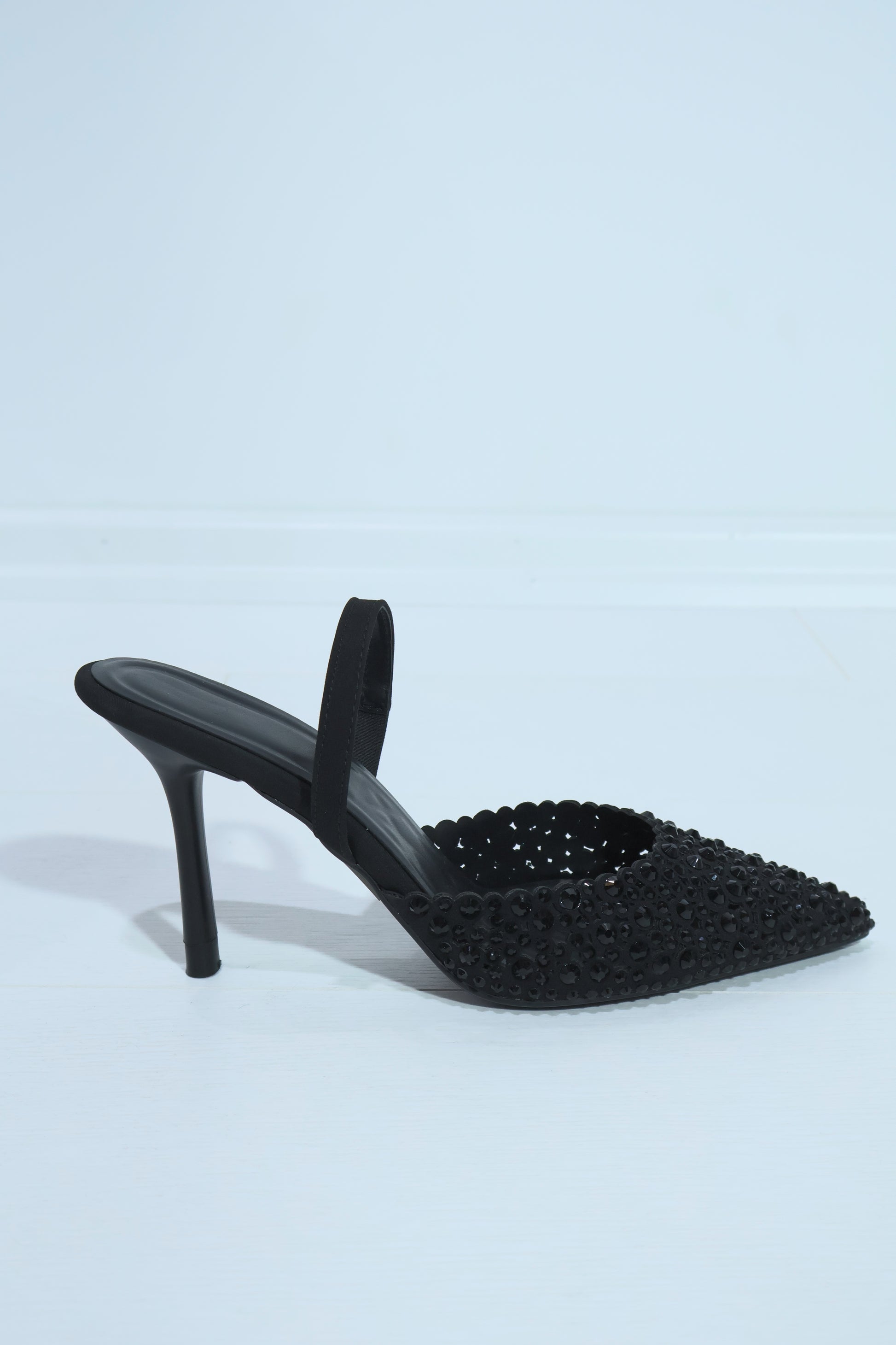 Özel Siyah Tasarım Kadın Taş İşlemeli Topuklu Lastikli Stiletto