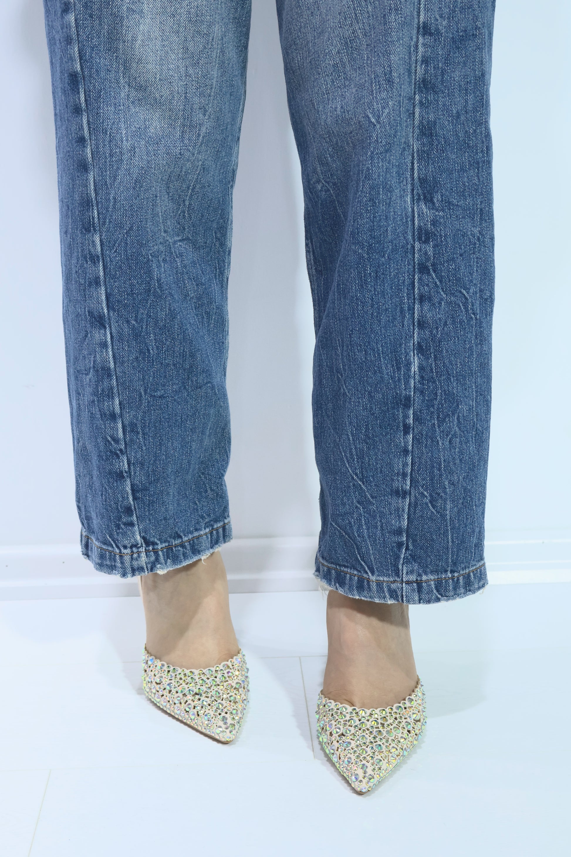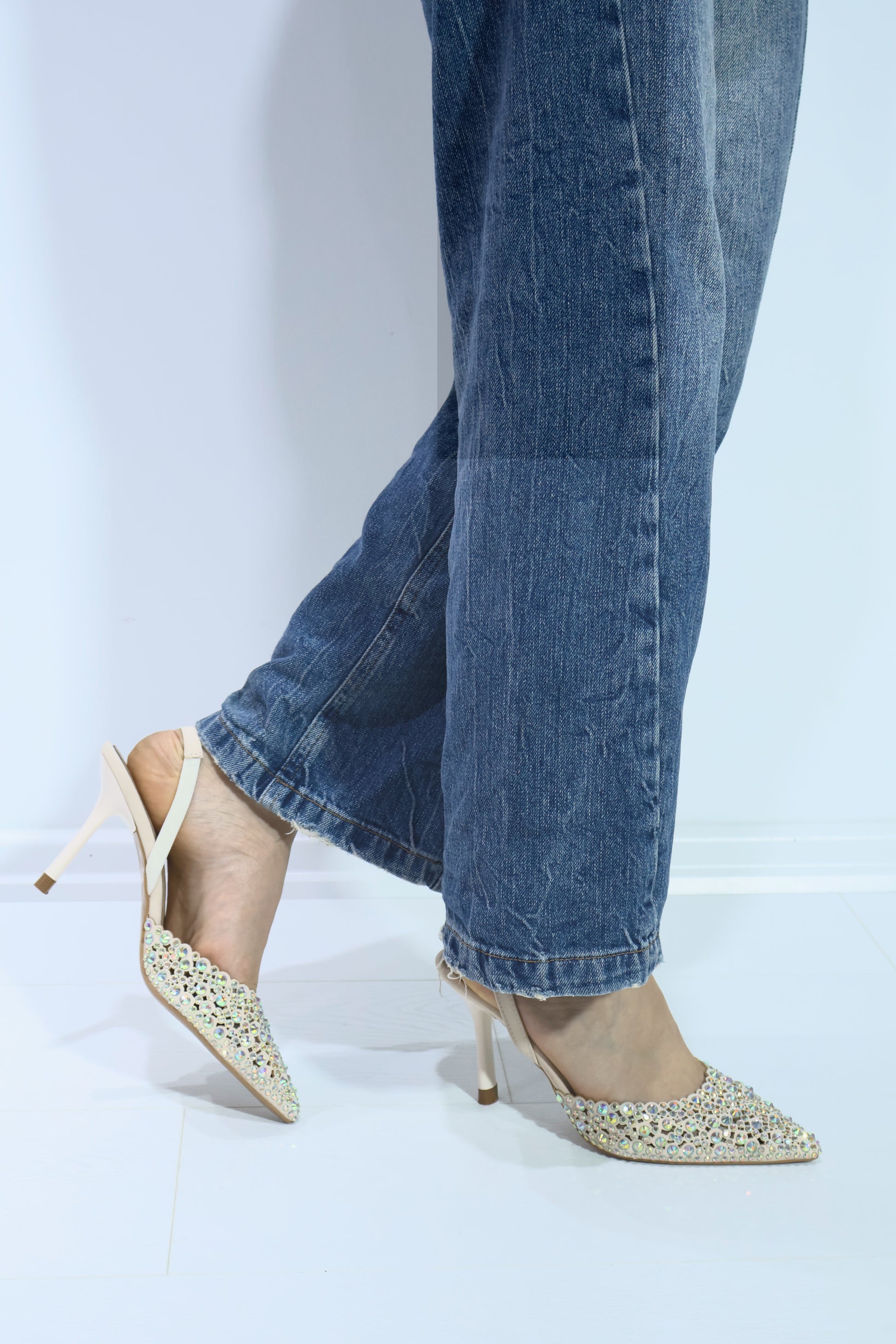 Özel Bej Tasarım Kadın Taş İşlemeli Topuklu Lastikli Stiletto