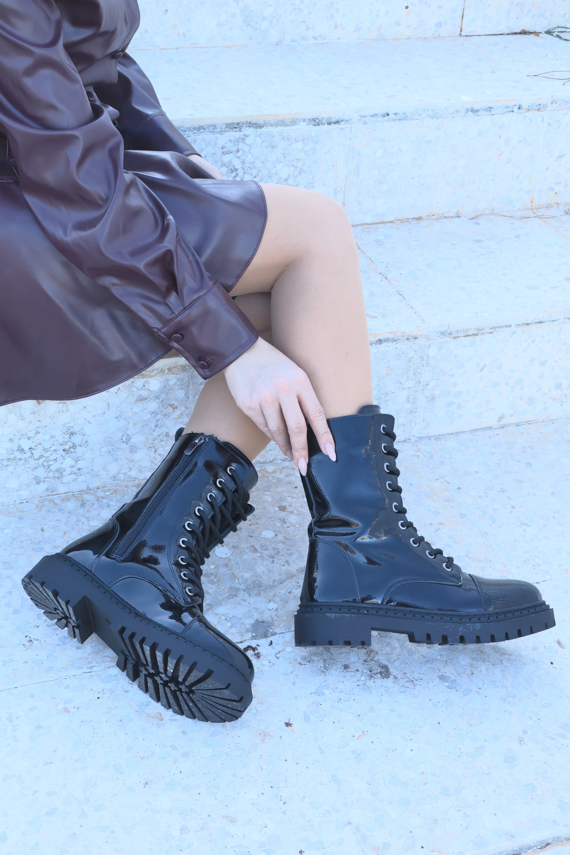 Piola Siyah Rugan Bağcıklı Kadın Postal Bot