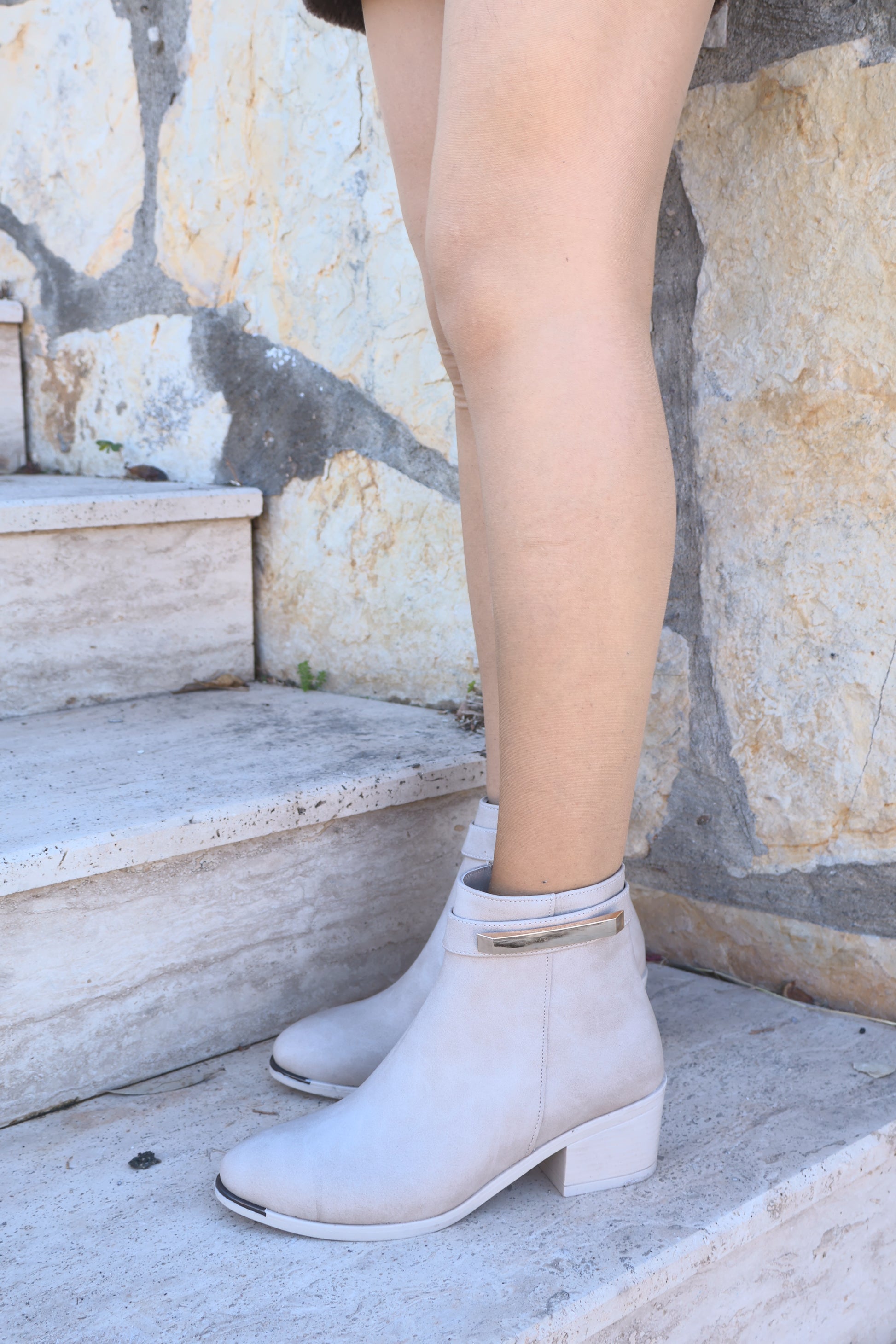 Renay Bej Yan Tokalı Kadın Topuklu Bot