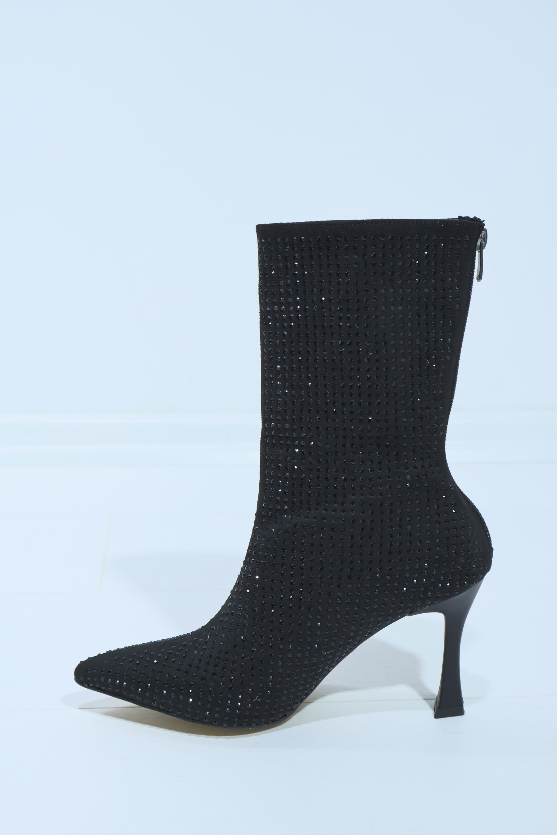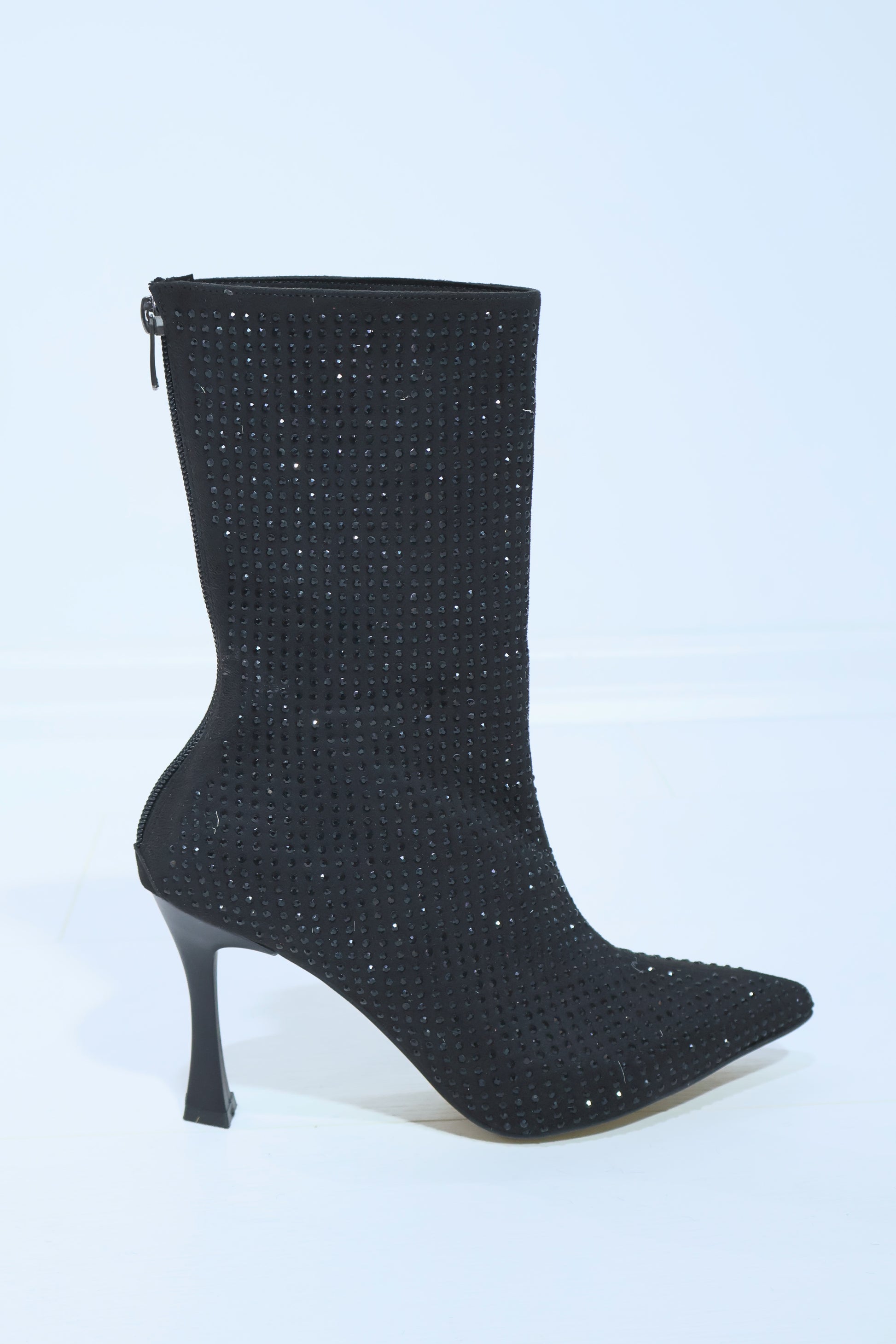 Simley Sivri Burun Taş Tasarımlı Fermuarlı Kadın Topuklu Bot