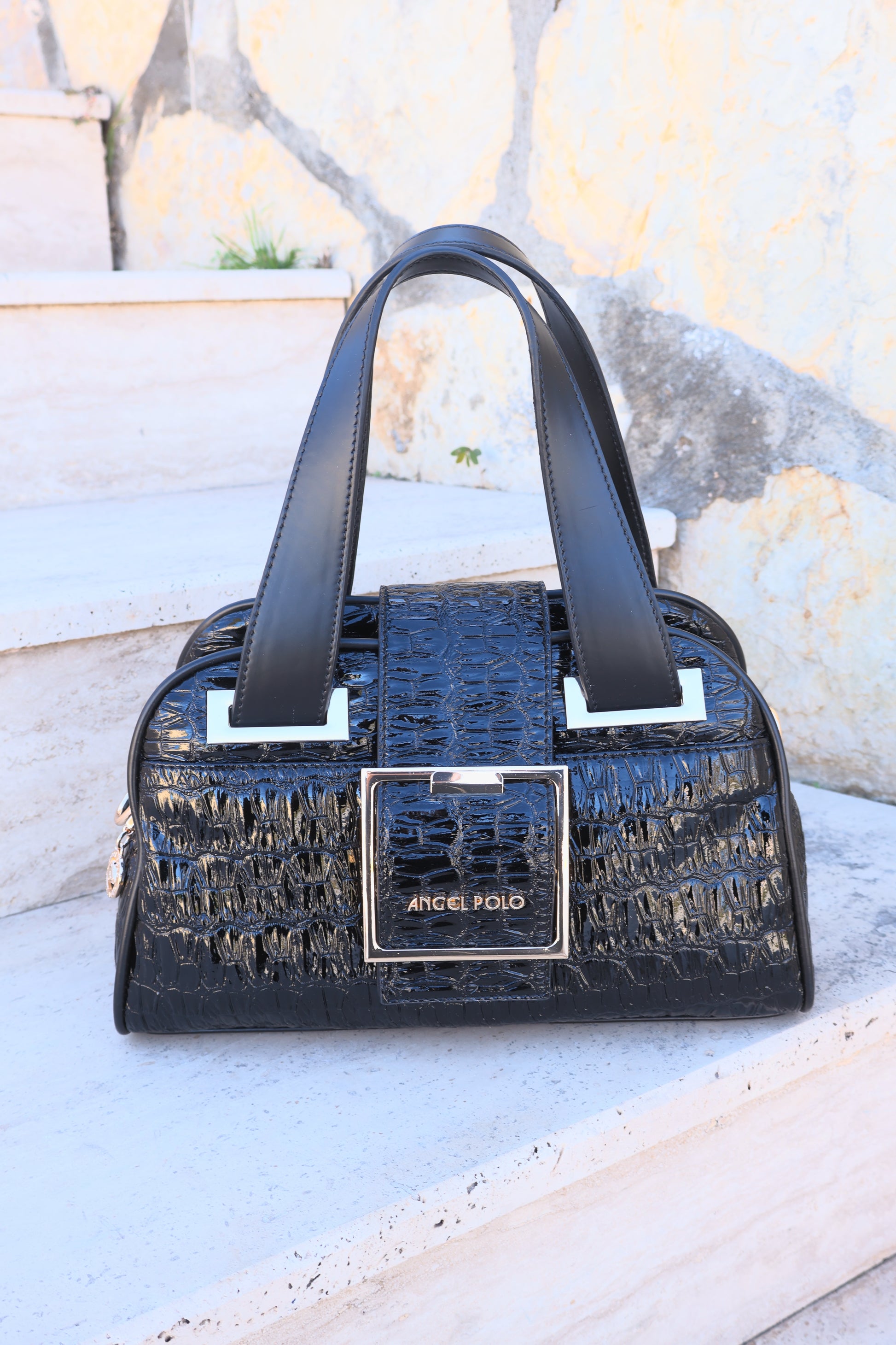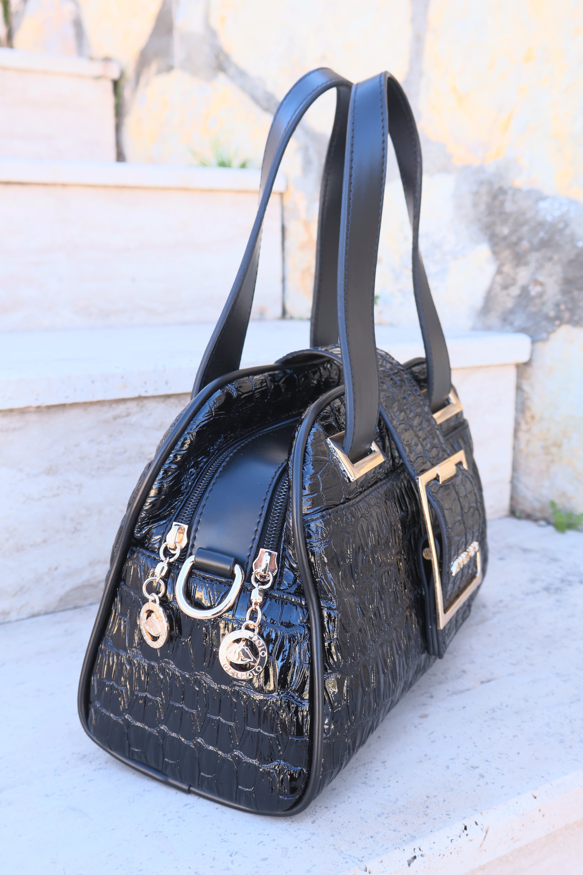 Timsah Desenli Sİyah Kadın Çanta